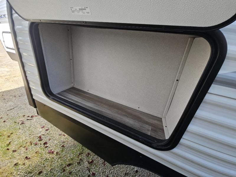 The Jayco Jay Flight SLX travel trailer is quite easy to own because it is lightweight for an easier towing experience. Built on a fully integrated A-frame with galvanized-steel, impact-resistant wheel wells, the Jay Flight SLX has quality at its very foundation. That quality continues on to the electric self-adjusting brakes, easy-lube hubs, Magnum Truss roof system, and LP quick connect. Some of what the mandatory Customer Value Package includes is backup camera prep, Keyed-Alike entry and baggage doors, marine grade exterior speakers, and an on-demand tankless water heater.