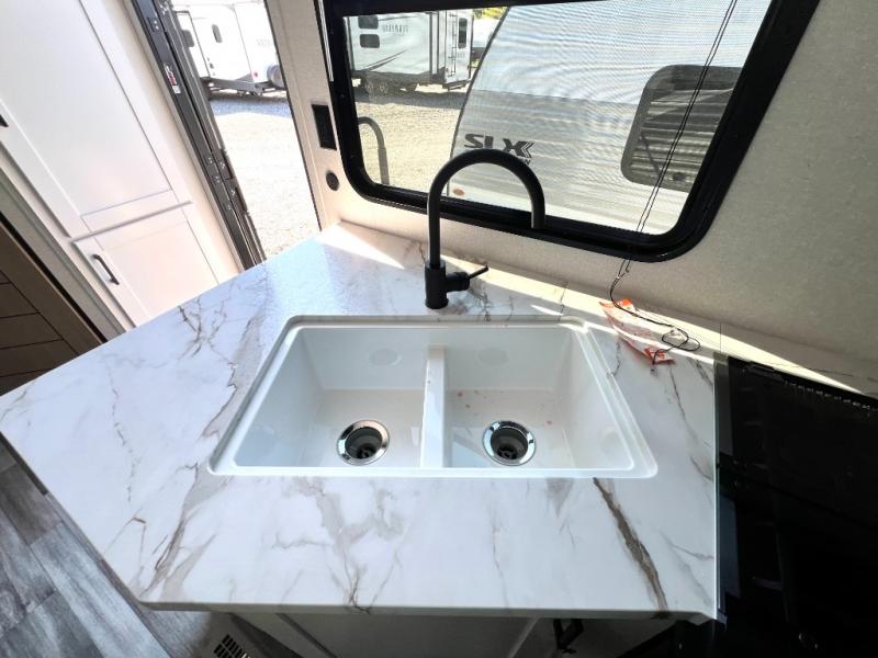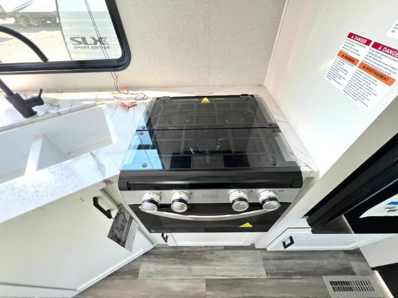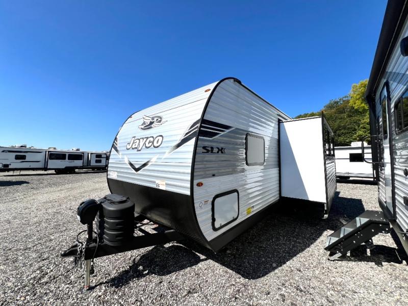 The Jayco Jay Flight SLX travel trailer is quite easy to own because it is lightweight for an easier towing experience. Built on a fully integrated A-frame with galvanized-steel, impact-resistant wheel wells, the Jay Flight SLX has quality at its very foundation. That quality continues on to the electric self-adjusting brakes, easy-lube hubs, Magnum Truss roof system, and LP quick connect. Some of what the mandatory Customer Value Package includes is backup camera prep, Keyed-Alike entry and baggage doors, and an on-demand tankless water heater.