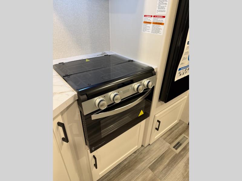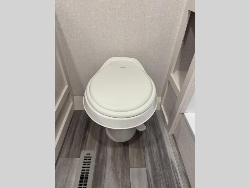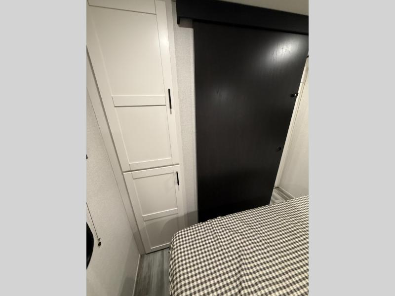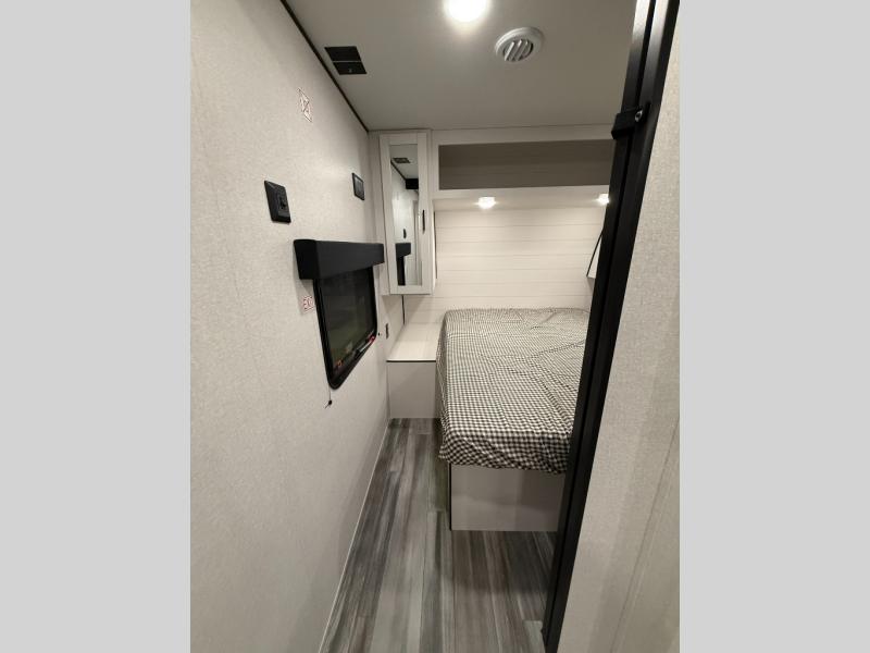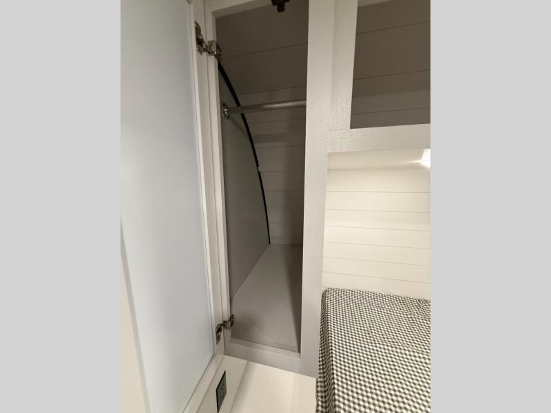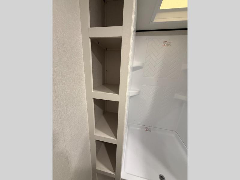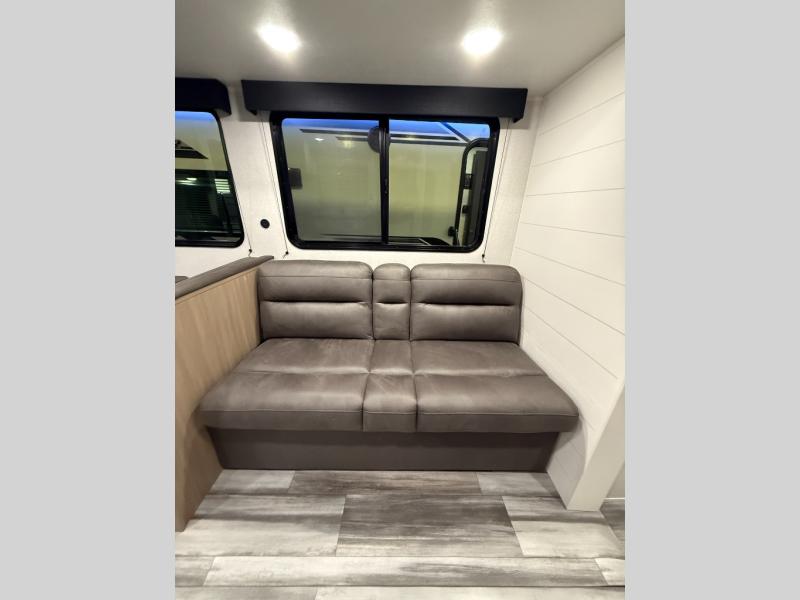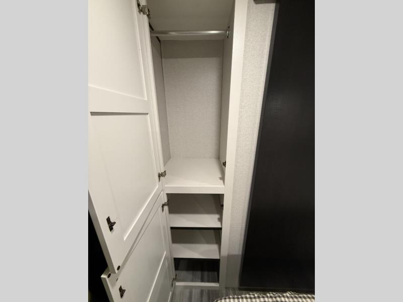 Camping trips just got a whole lot better in this spacious travel trailer for four! You'll love having a private bedroom up front with a queen bed and dual bedside wardrobes, while your guests sleep on the jack-knife sofa and booth dinette within the large slide out. There is a fully-equipped kitchen to make meals each day, plus a hidden pantry with shelves for games and a second pantry to keep snacks stocked. The full rear bath is both spacious and convenient since it's tuck away in the back. Start camping today!