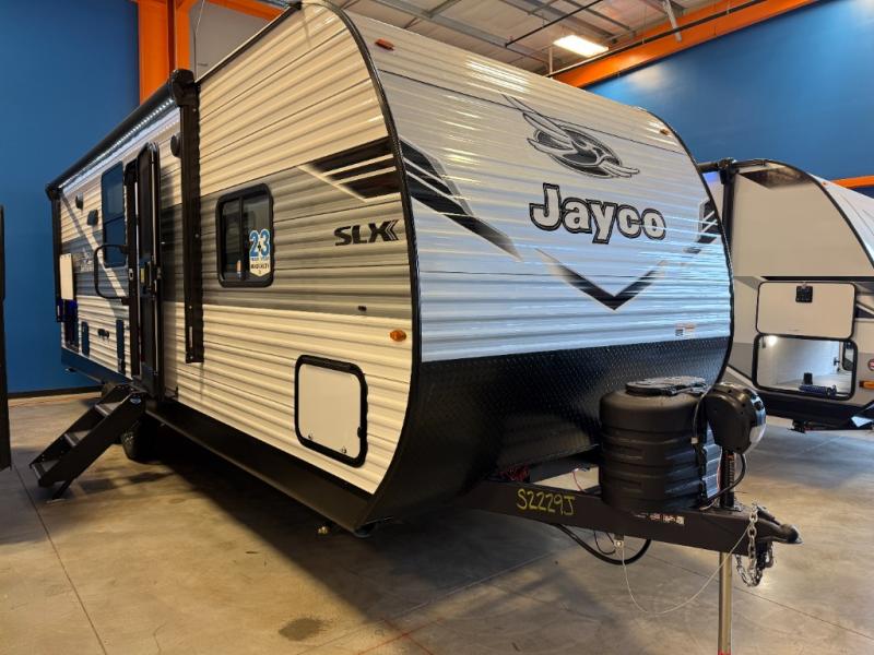 The Jayco Jay Flight SLX travel trailer is quite easy to own because it is lightweight for an easier towing experience. Built on a fully integrated A-frame with galvanized-steel, impact-resistant wheel wells, the Jay Flight SLX has quality at its very foundation. That quality continues on to the electric self-adjusting brakes, easy-lube hubs, Magnum Truss roof system, and LP quick connect. Some of what the mandatory Customer Value Package includes is backup camera prep, Keyed-Alike entry and baggage doors, and an on-demand tankless water heater.