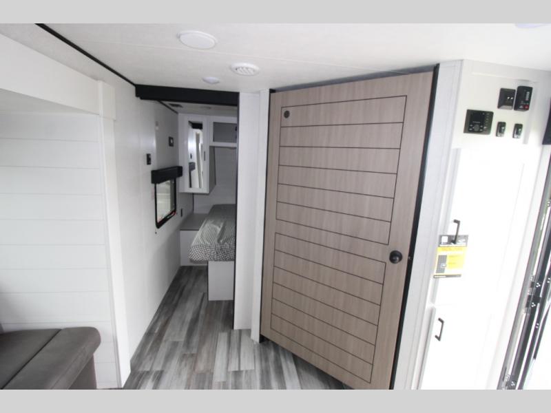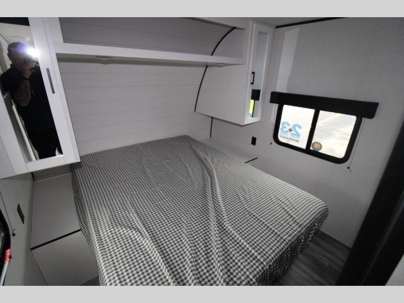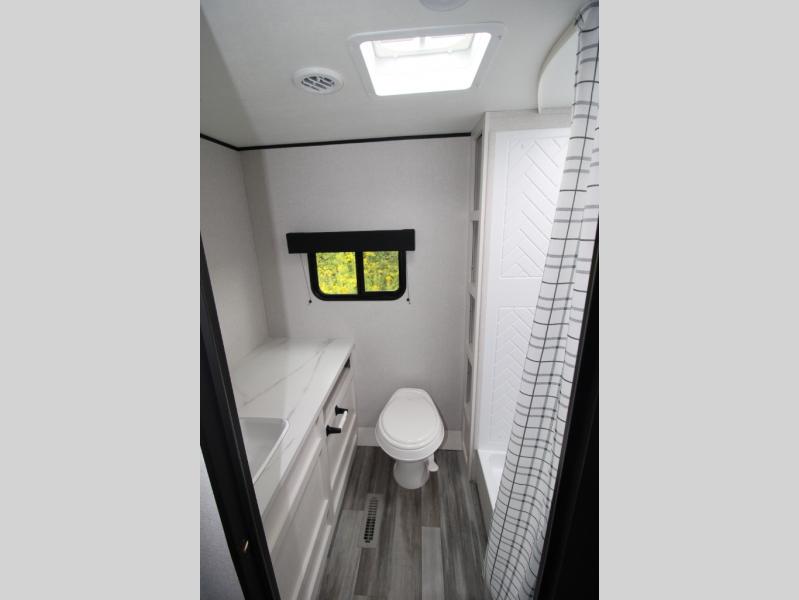 Camping trips just got a whole lot better in this spacious travel trailer for four! You'll love having a private bedroom up front with a queen bed and dual bedside wardrobes, while your guests sleep on the jack-knife sofa and booth dinette within the large slide out. There is a fully-equipped kitchen to make meals each day, plus a hidden pantry with shelves for games and a second pantry to keep snacks stocked. The full rear bath is both spacious and convenient since it's tuck away in the back. Start camping today!