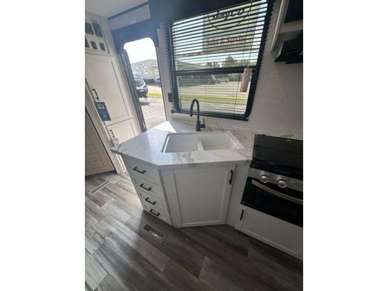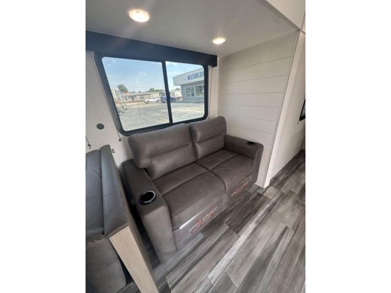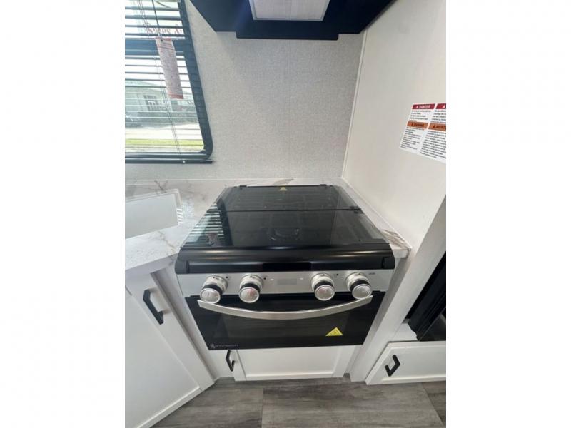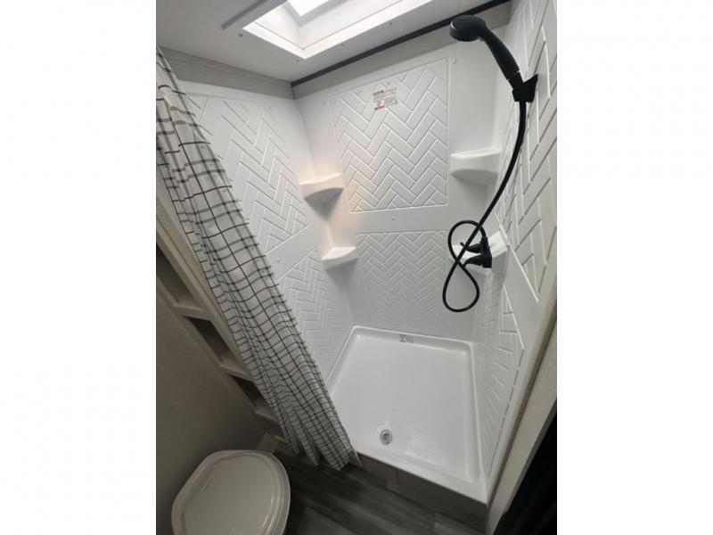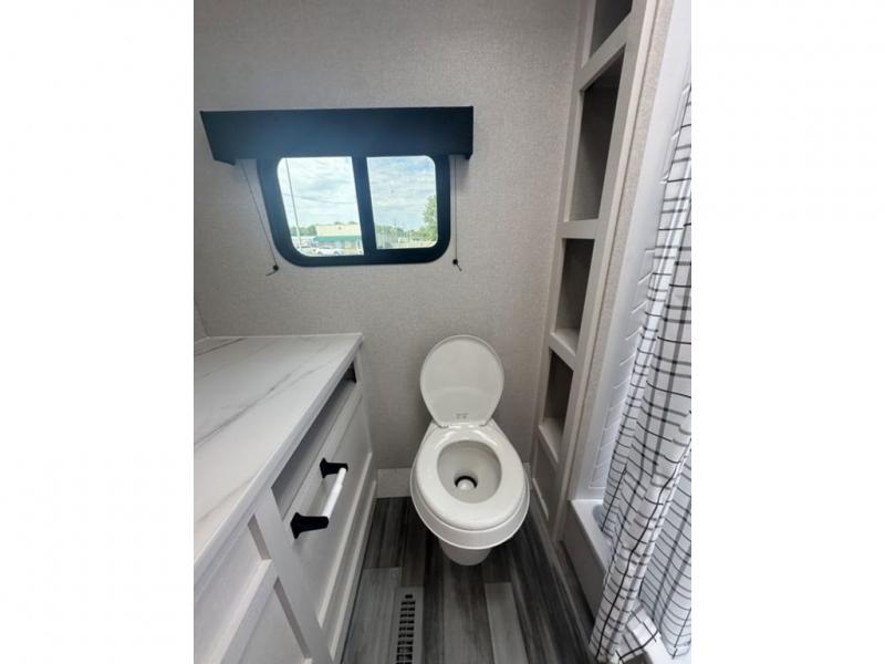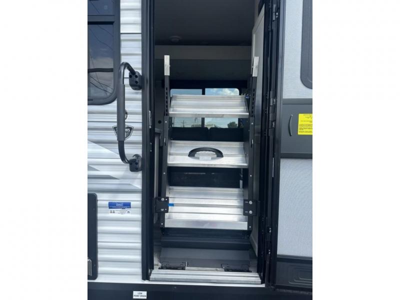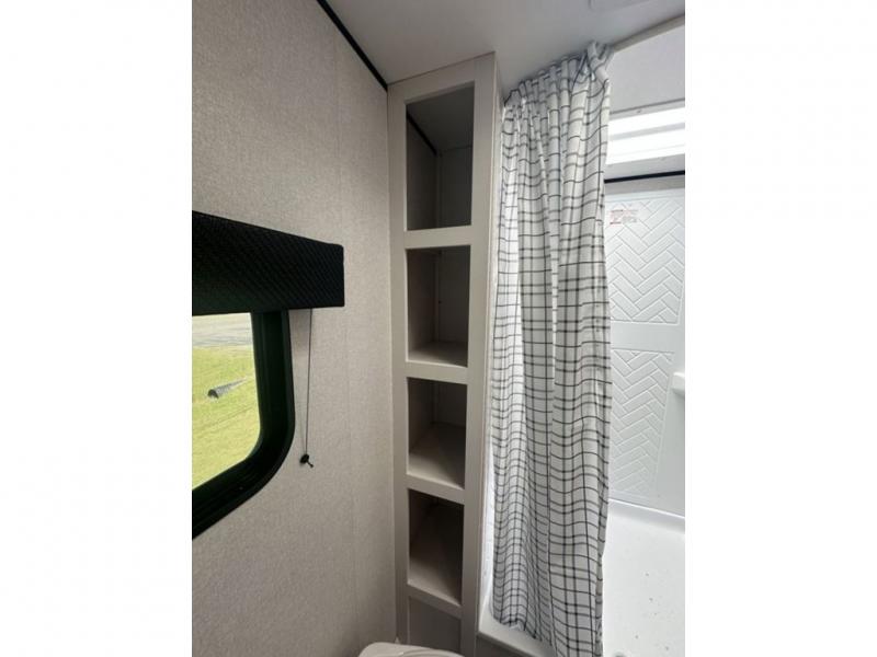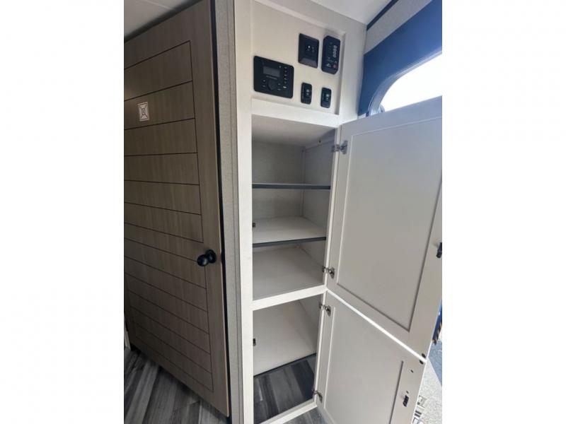 Camping trips just got a whole lot better in this spacious travel trailer for four! You'll love having a private bedroom up front with a queen bed and dual bedside wardrobes, while your guests sleep on the jack-knife sofa and booth dinette within the large slide out. There is a fully-equipped kitchen to make meals each day, plus a hidden pantry with shelves for games and a second pantry to keep snacks stocked. The full rear bath is both spacious and convenient since it's tuck away in the back. Start camping today!