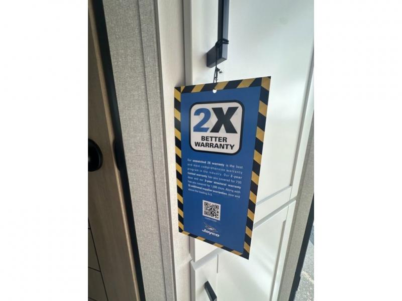The Jayco Jay Flight SLX travel trailer is quite easy to own because it is lightweight for an easier towing experience. Built on a fully integrated A-frame with galvanized-steel, impact-resistant wheel wells, the Jay Flight SLX has quality at its very foundation. That quality continues on to the electric self-adjusting brakes, easy-lube hubs, Magnum Truss roof system, and LP quick connect. Some of what the mandatory Customer Value Package includes is backup camera prep, Keyed-Alike entry and baggage doors, and an on-demand tankless water heater.
