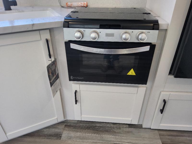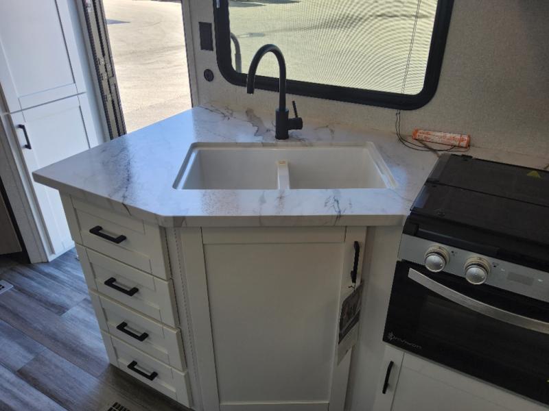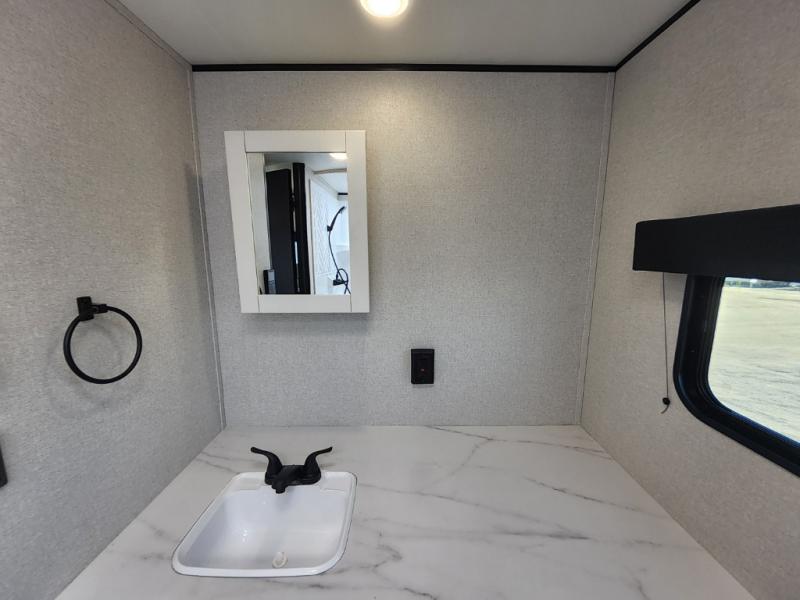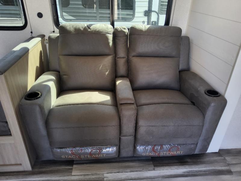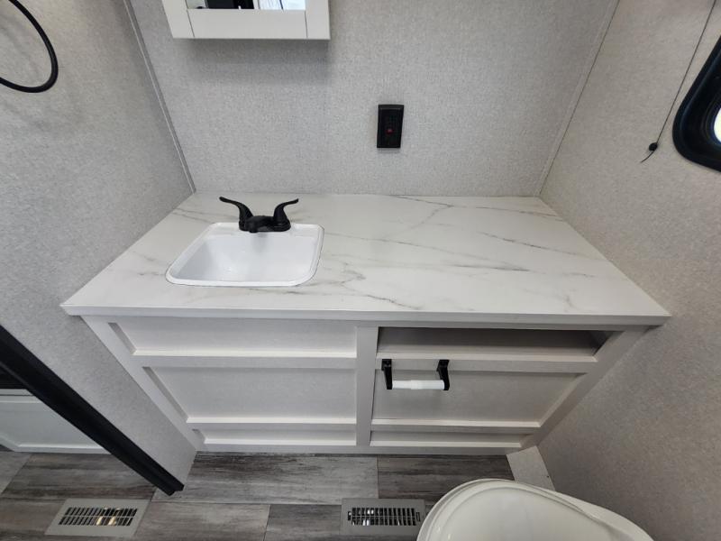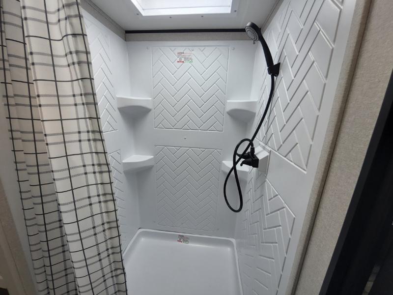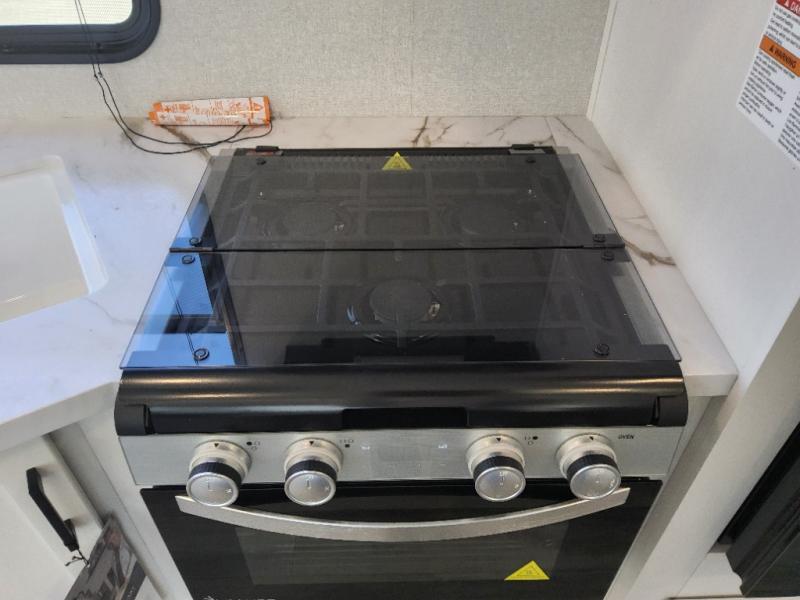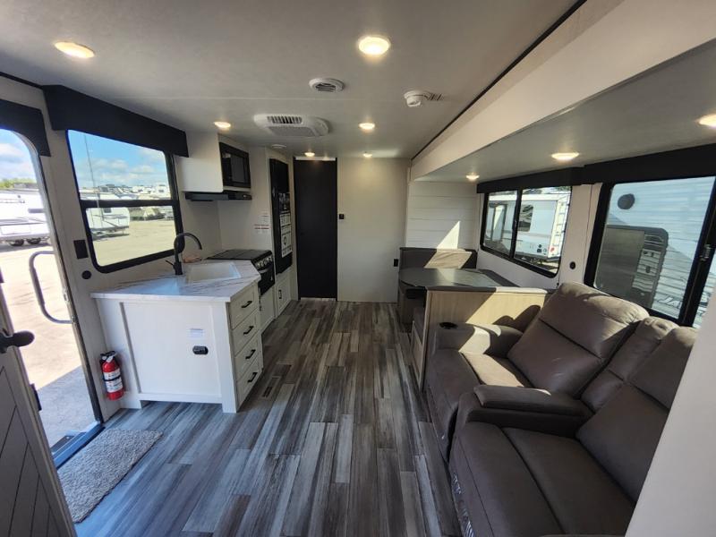 Camping trips just got a whole lot better in this spacious travel trailer for four! You'll love having a private bedroom up front with a queen bed and dual bedside wardrobes, while your guests sleep on the jack-knife sofa and booth dinette within the large slide out. There is a fully-equipped kitchen to make meals each day, plus a hidden pantry with shelves for games and a second pantry to keep snacks stocked. The full rear bath is both spacious and convenient since it's tuck away in the back. Start camping today!