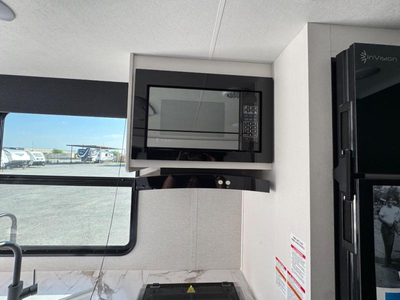 Camping trips just got a whole lot better in this spacious travel trailer for four! You'll love having a private bedroom up front with a queen bed and dual bedside wardrobes, while your guests sleep on the jack-knife sofa and booth dinette within the large slide out. There is a fully-equipped kitchen to make meals each day, plus a hidden pantry with shelves for games and a second pantry to keep snacks stocked. The full rear bath is both spacious and convenient since it's tuck away in the back. Start camping today!