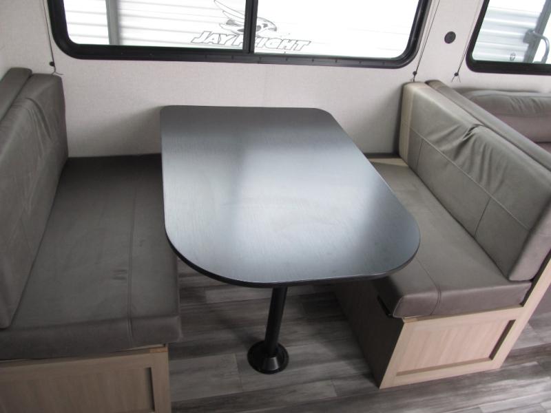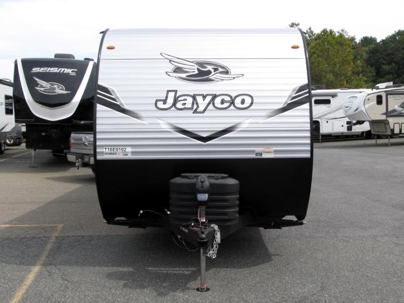 The Jayco Jay Flight SLX travel trailer is quite easy to own because it is lightweight for an easier towing experience. Built on a fully integrated A-frame with galvanized-steel, impact-resistant wheel wells, the Jay Flight SLX has quality at its very foundation. That quality continues on to the electric self-adjusting brakes, easy-lube hubs, Magnum Truss roof system, and LP quick connect. Some of what the mandatory Customer Value Package includes is backup camera prep, Keyed-Alike entry and baggage doors, and an on-demand tankless water heater.