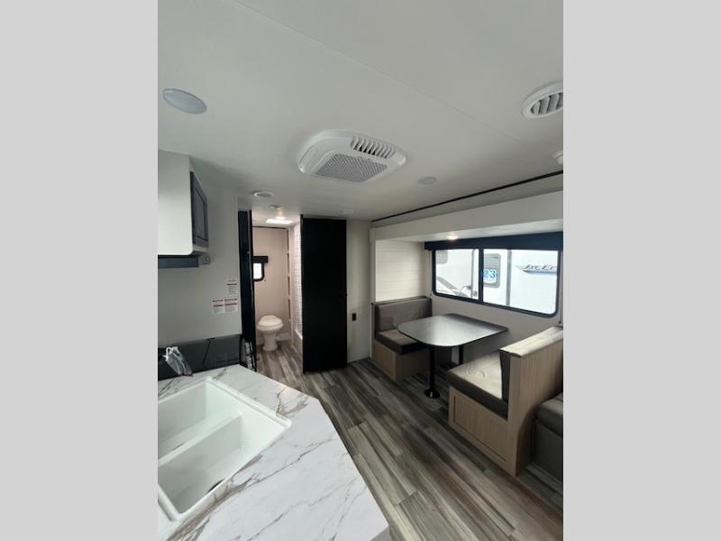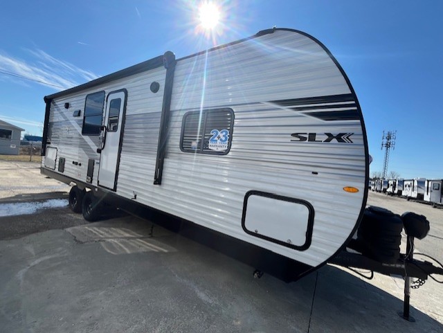 The Jayco Jay Flight SLX travel trailer is quite easy to own because it is lightweight for an easier towing experience. Built on a fully integrated A-frame with galvanized-steel, impact-resistant wheel wells, the Jay Flight SLX has quality at its very foundation. That quality continues on to the electric self-adjusting brakes, easy-lube hubs, Magnum Truss roof system, and LP quick connect. Some of what the mandatory Customer Value Package includes is backup camera prep, Keyed-Alike entry and baggage doors, and an on-demand tankless water heater.