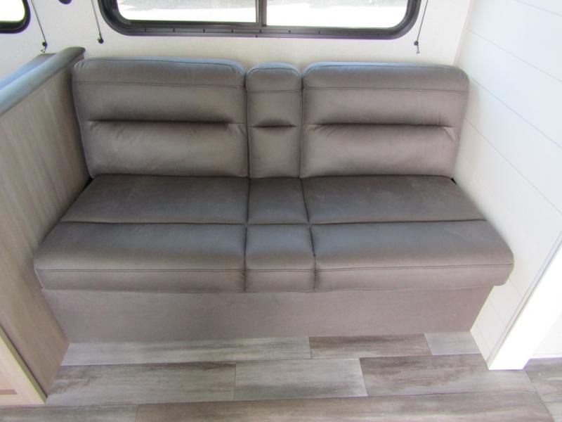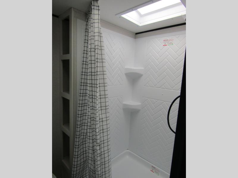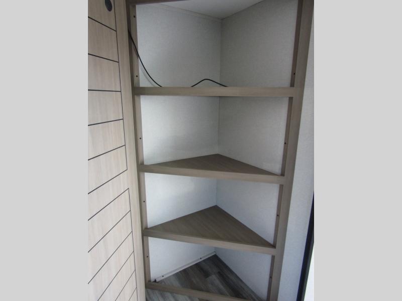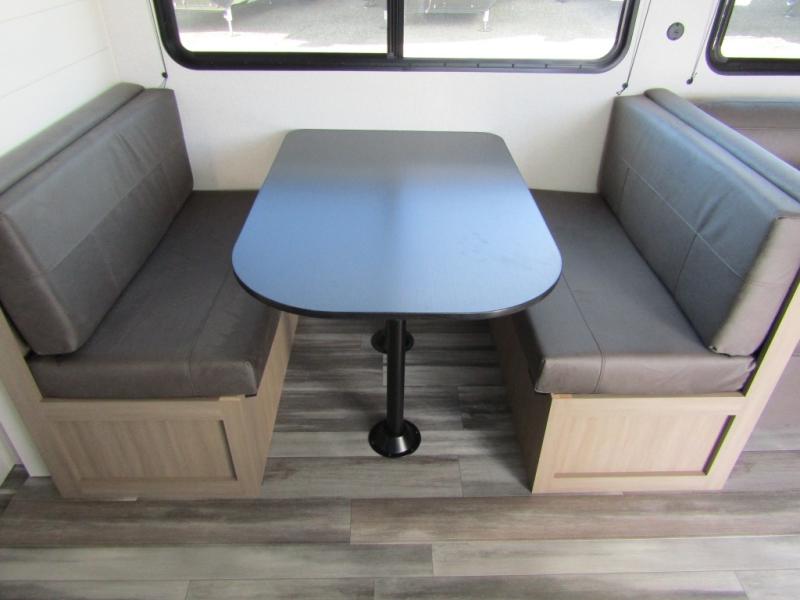 Camping trips just got a whole lot better in this spacious travel trailer for four! You'll love having a private bedroom up front with a queen bed and dual bedside wardrobes, while your guests sleep on the jack-knife sofa and booth dinette within the large slide out. There is a fully-equipped kitchen to make meals each day, plus a hidden pantry with shelves for games and a second pantry to keep snacks stocked. The full rear bath is both spacious and convenient since it's tuck away in the back. Start camping today!