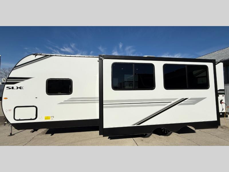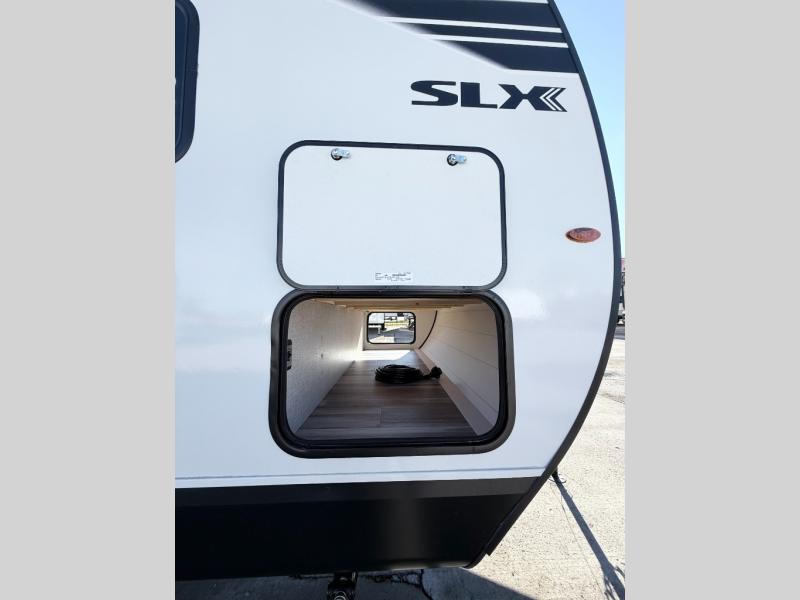 The Jayco Jay Flight SLX travel trailer is quite easy to own because it is lightweight for an easier towing experience. Built on a fully integrated A-frame with galvanized-steel, impact-resistant wheel wells, the Jay Flight SLX has quality at its very foundation. That quality continues on to the electric self-adjusting brakes, easy-lube hubs, Magnum Truss roof system, and LP quick connect. Some of what the mandatory Customer Value Package includes is backup camera prep, Keyed-Alike entry and baggage doors, and an on-demand tankless water heater.