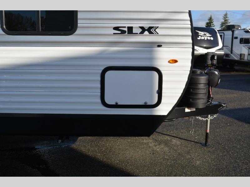 The Jayco Jay Flight SLX travel trailer is quite easy to own because it is lightweight for an easier towing experience. Built on a fully integrated A-frame with galvanized-steel, impact-resistant wheel wells, the Jay Flight SLX has quality at its very foundation. That quality continues on to the electric self-adjusting brakes, easy-lube hubs, Magnum Truss roof system, and LP quick connect. Some of what the mandatory Customer Value Package includes is backup camera prep, Keyed-Alike entry and baggage doors, and an on-demand tankless water heater.