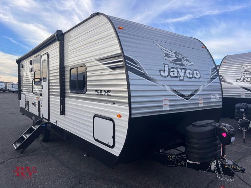 The Jayco Jay Flight SLX travel trailer is quite easy to own because it is lightweight for an easier towing experience. Built on a fully integrated A-frame with galvanized-steel, impact-resistant wheel wells, the Jay Flight SLX has quality at its very foundation. That quality continues on to the electric self-adjusting brakes, easy-lube hubs, Magnum Truss roof system, and LP quick connect. Some of what the mandatory Customer Value Package includes is backup camera prep, Keyed-Alike entry and baggage doors, and an on-demand tankless water heater.