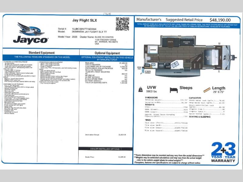 Jayco Jay Flight SLX travel trailer 265MWSW highlights: