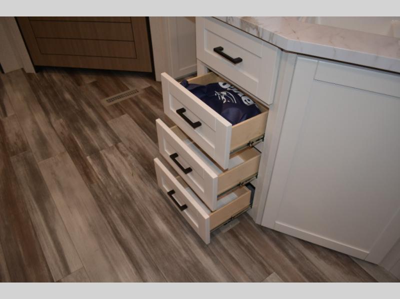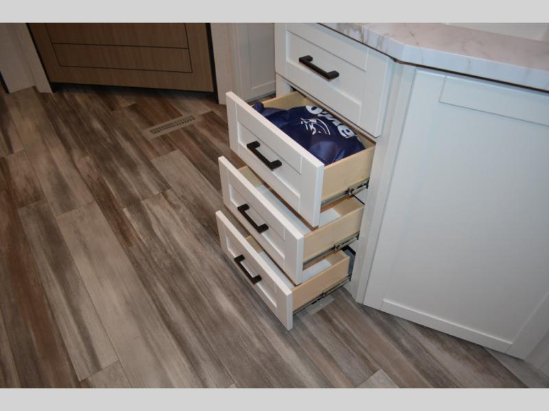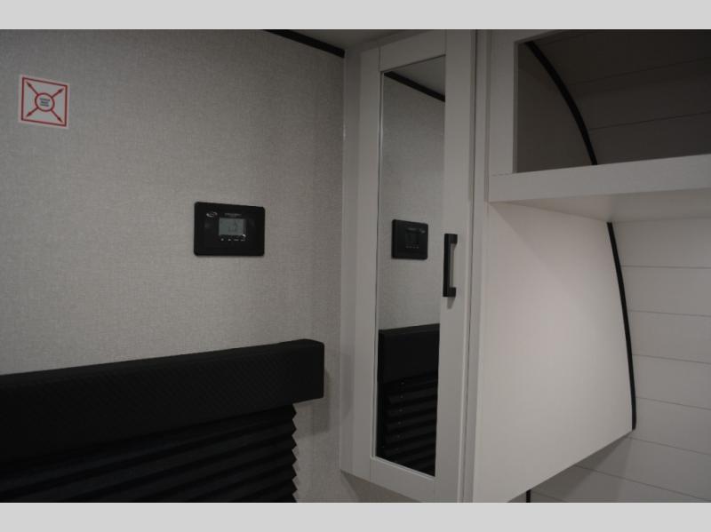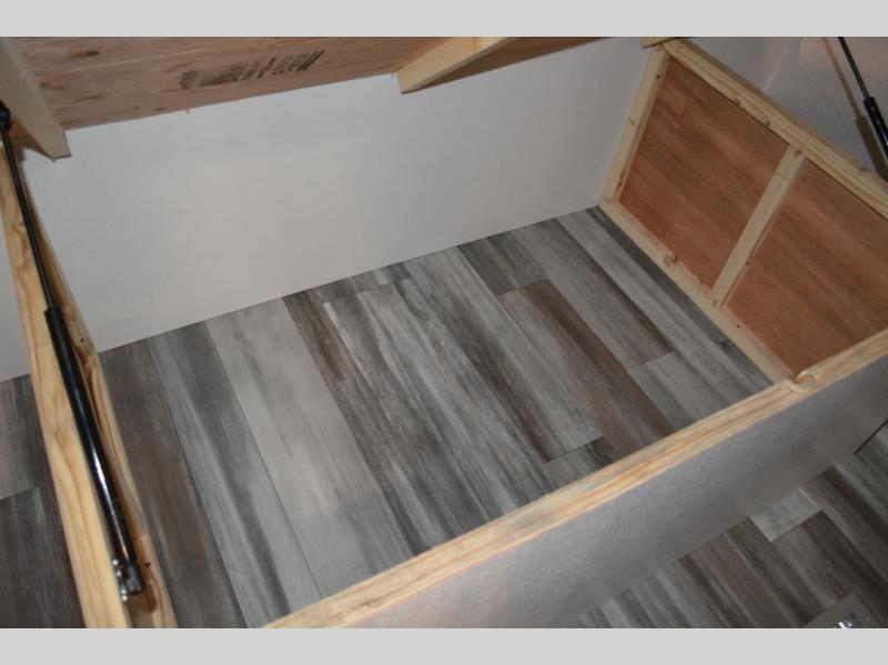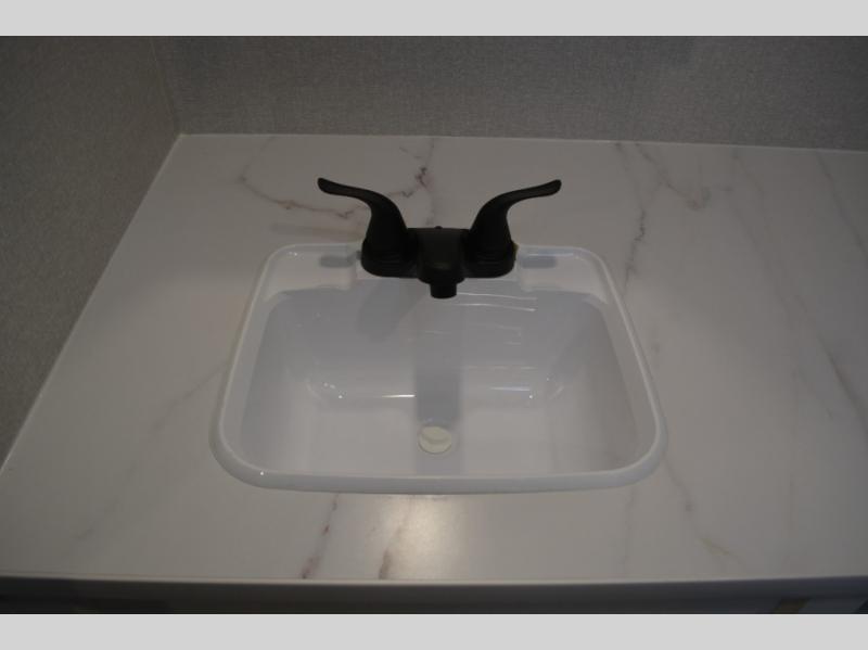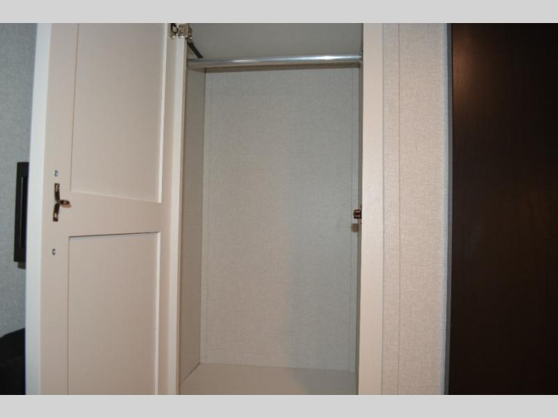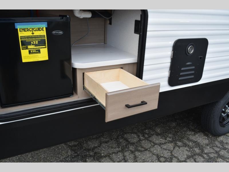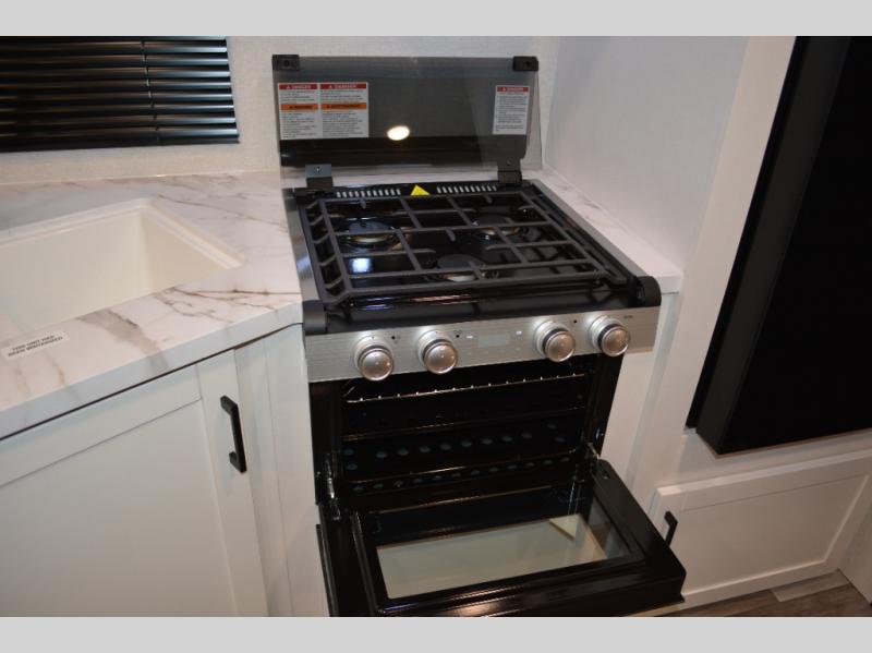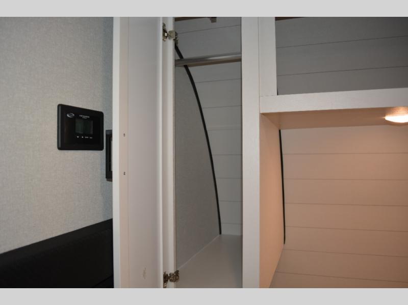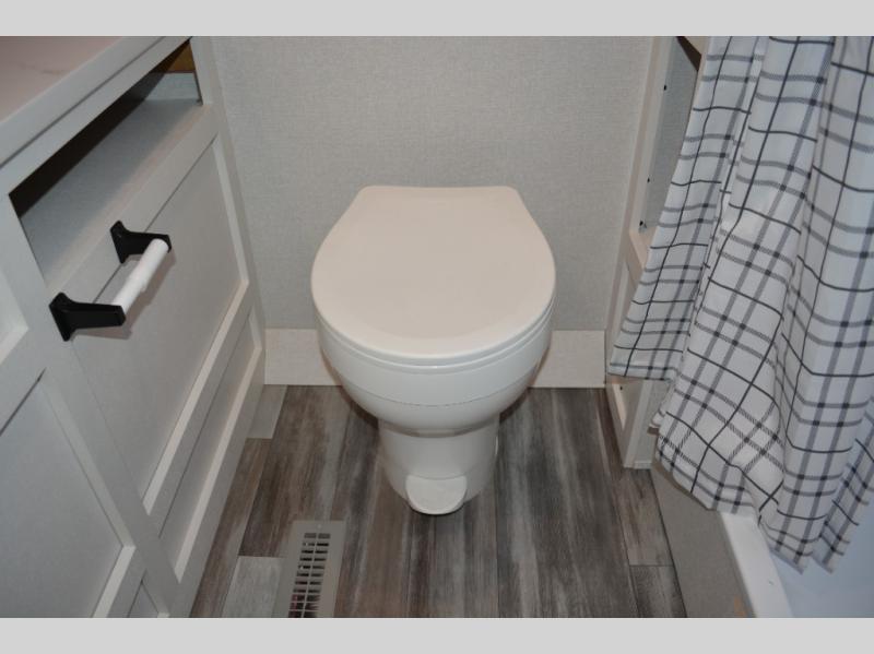 Camping trips just got a whole lot better in this spacious travel trailer for four! You'll love having a private bedroom up front with a queen bed and dual bedside wardrobes, while your guests sleep on the jack-knife sofa and booth dinette within the large slide out. There is a fully-equipped kitchen to make meals each day, plus a hidden pantry with shelves for games and a second pantry to keep snacks stocked. The full rear bath is both spacious and convenient since it's tuck away in the back. Start camping today!