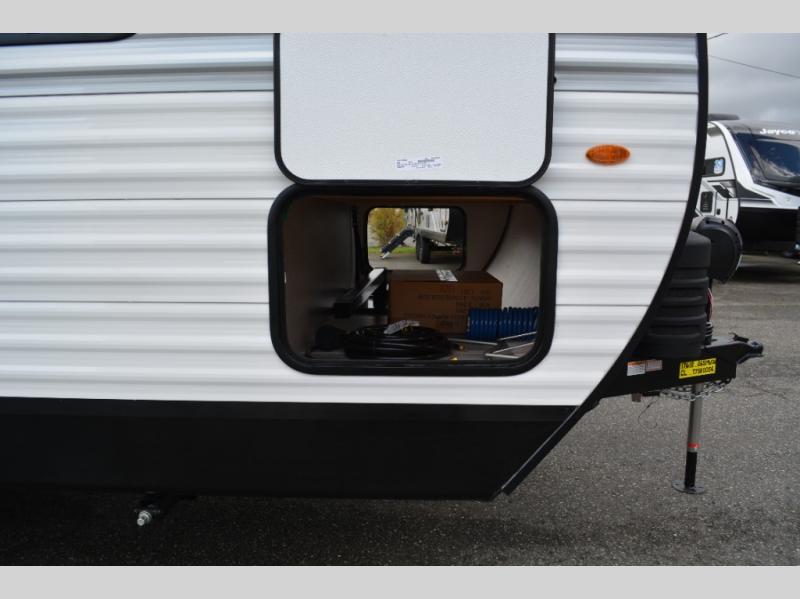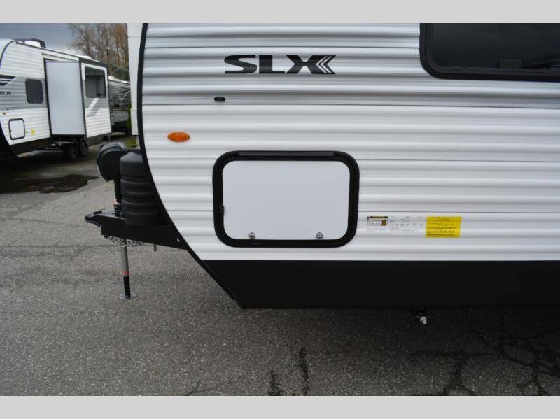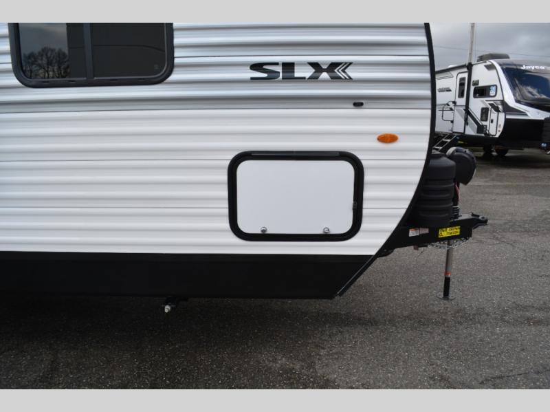 The Jayco Jay Flight SLX travel trailer is quite easy to own because it is lightweight for an easier towing experience. Built on a fully integrated A-frame with galvanized-steel, impact-resistant wheel wells, the Jay Flight SLX has quality at its very foundation. That quality continues on to the electric self-adjusting brakes, easy-lube hubs, Magnum Truss roof system, and LP quick connect. Some of what the mandatory Customer Value Package includes is backup camera prep, Keyed-Alike entry and baggage doors, and an on-demand tankless water heater.
