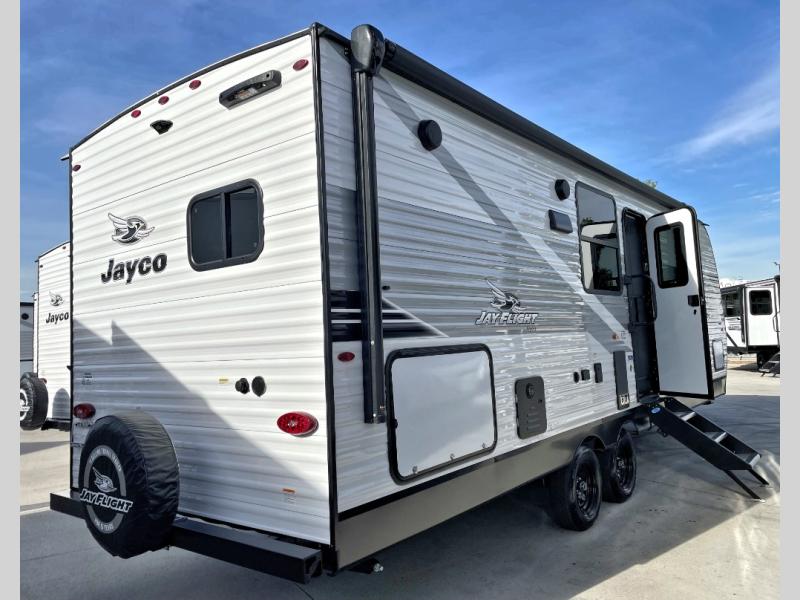 The Jayco Jay Flight SLX travel trailer is quite easy to own because it is lightweight for an easier towing experience. Built on a fully integrated A-frame with galvanized-steel, impact-resistant wheel wells, the Jay Flight SLX has quality at its very foundation. That quality continues on to the electric self-adjusting brakes, easy-lube hubs, Magnum Truss roof system, and LP quick connect. Some of what the mandatory Customer Value Package includes is backup camera prep, Keyed-Alike entry and baggage doors, and an on-demand tankless water heater.