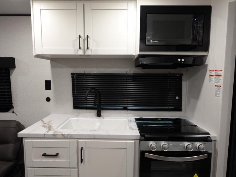 The Jayco Jay Flight SLX toy hauler travel trailer is quite easy to own because it is lightweight for an easier towing experience. Built on a fully integrated A-frame with galvanized-steel, impact-resistant wheel wells, the Jay Flight SLX has quality at its very foundation. That quality continues on to the electric self-adjusting brakes, easy-lube hubs, Magnum Truss roof system, and LP quick connect. Some of what the mandatory Customer Value Package includes is backup camera prep, Keyed-Alike entry and baggage doors, and an on-demand tankless water heater.