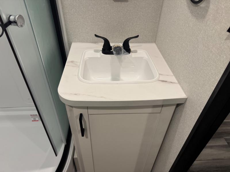 The Jayco Jay Flight SLX toy hauler travel trailer is quite easy to own because it is lightweight for an easier towing experience. Built on a fully integrated A-frame with galvanized-steel, impact-resistant wheel wells, the Jay Flight SLX has quality at its very foundation. That quality continues on to the electric self-adjusting brakes, easy-lube hubs, Magnum Truss roof system, and LP quick connect. Some of what the mandatory Customer Value Package includes is backup camera prep, Keyed-Alike entry and baggage doors, and an on-demand tankless water heater.