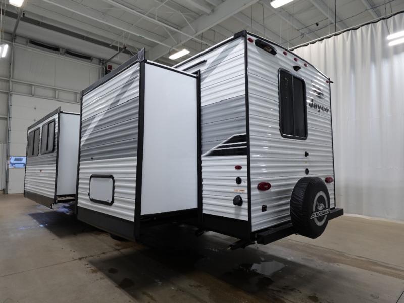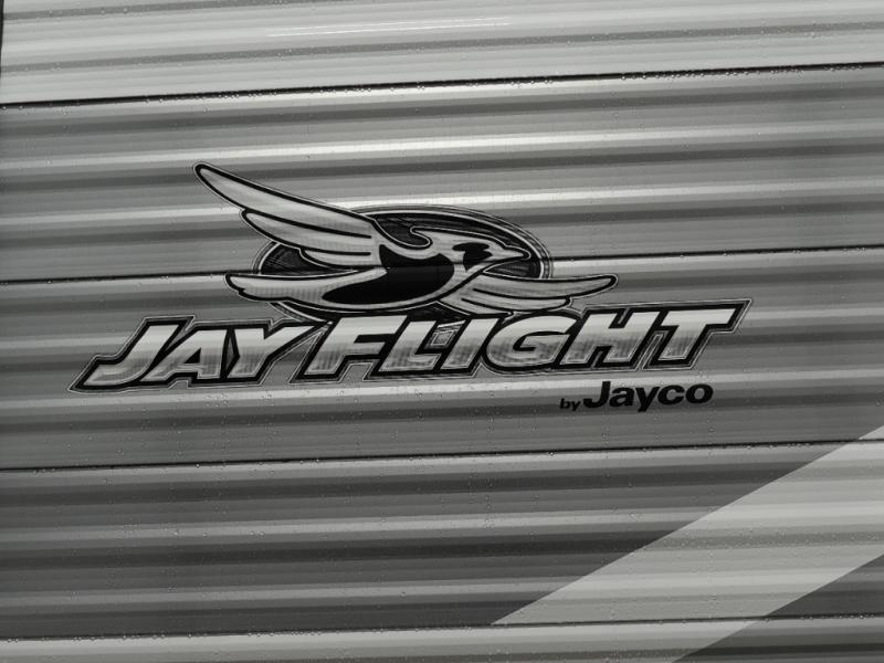 The Jayco Jay Flight SLX travel trailer is quite easy to own because it is lightweight for an easier towing experience. Built on a fully integrated A-frame with galvanized-steel, impact-resistant wheel wells, the Jay Flight SLX has quality at its very foundation. That quality continues on to the electric self-adjusting brakes, easy-lube hubs, Magnum Truss roof system, and LP quick connect. Some of what the mandatory Customer Value Package includes is backup camera prep, Keyed-Alike entry and baggage doors, marine grade exterior speakers, and an on-demand tankless water heater.