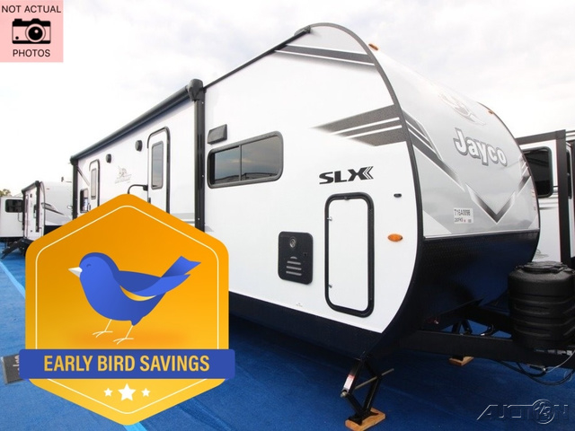 The Jayco Jay Flight SLX travel trailer is quite easy to own because it is lightweight for an easier towing experience. Built on a fully integrated A-frame with galvanized-steel, impact-resistant wheel wells, the Jay Flight SLX has quality at its very foundation. That quality continues on to the electric self-adjusting brakes, easy-lube hubs, Magnum Truss roof system, and LP quick connect. Some of what the mandatory Customer Value Package includes is backup camera prep, Keyed-Alike entry and baggage doors, marine grade exterior speakers, and an on-demand tankless water heater.