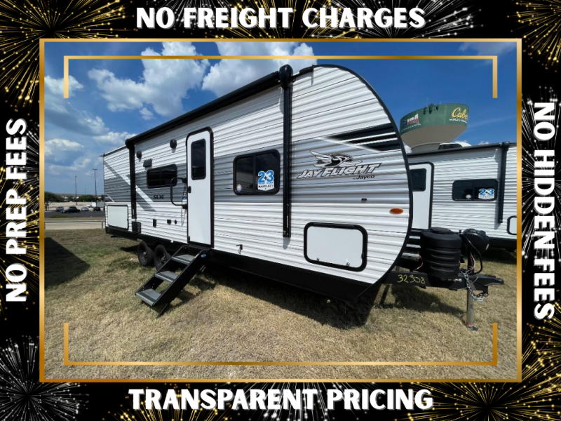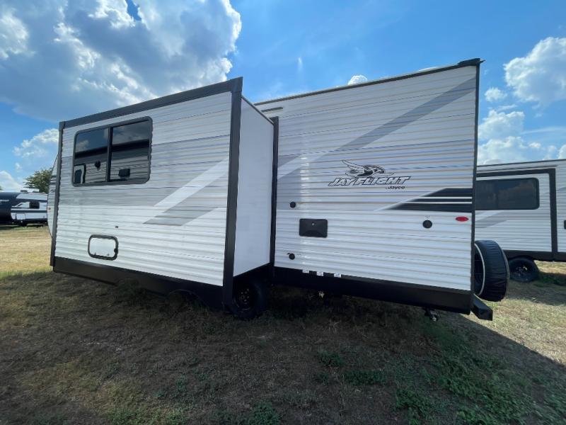 The Jayco Jay Flight SLX travel trailer is quite easy to own because it is lightweight for an easier towing experience. Built on a fully integrated A-frame with galvanized-steel, impact-resistant wheel wells, the Jay Flight SLX has quality at its very foundation. That quality continues on to the electric self-adjusting brakes, easy-lube hubs, Magnum Truss roof system, and LP quick connect. Some of what the mandatory Customer Value Package includes is backup camera prep, Keyed-Alike entry and baggage doors, and an on-demand tankless water heater.