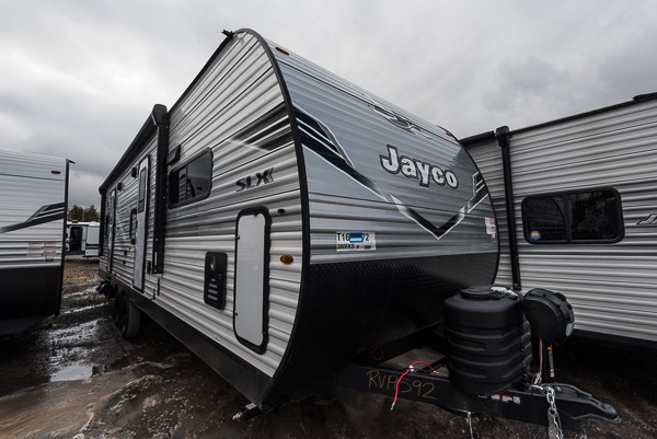 The Jayco Jay Flight SLX travel trailer is quite easy to own because it is lightweight for an easier towing experience. Built on a fully integrated A-frame with galvanized-steel, impact-resistant wheel wells, the Jay Flight SLX has quality at its very foundation. That quality continues on to the electric self-adjusting brakes, easy-lube hubs, Magnum Truss roof system, and LP quick connect. Some of what the mandatory Customer Value Package includes is backup camera prep, Keyed-Alike entry and baggage doors, and an on-demand tankless water heater.