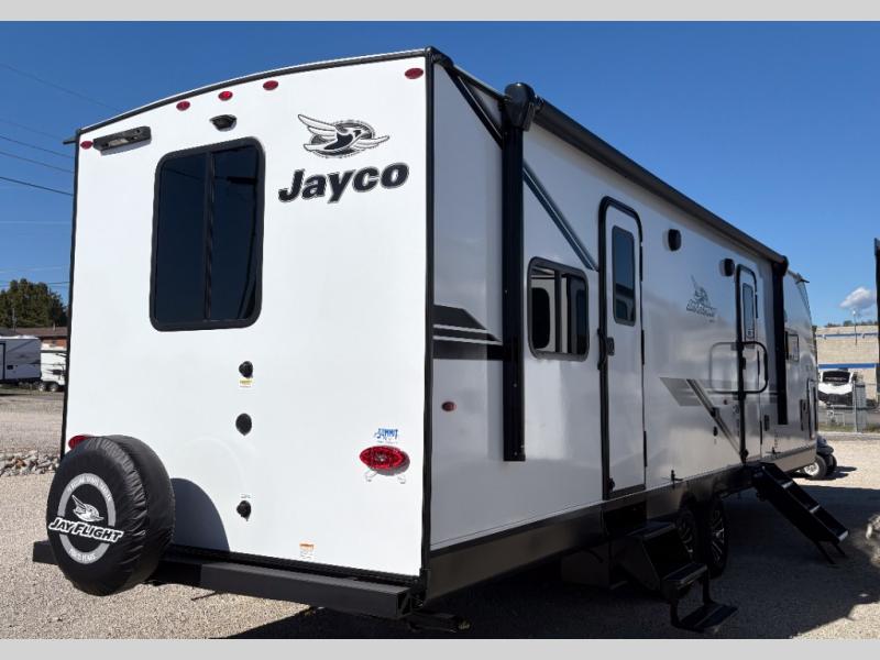 The Jayco Jay Flight SLX travel trailer is quite easy to own because it is lightweight for an easier towing experience. Built on a fully integrated A-frame with galvanized-steel, impact-resistant wheel wells, the Jay Flight SLX has quality at its very foundation. That quality continues on to the electric self-adjusting brakes, easy-lube hubs, Magnum Truss roof system, and LP quick connect. Some of what the mandatory Customer Value Package includes is backup camera prep, Keyed-Alike entry and baggage doors, and an on-demand tankless water heater.
