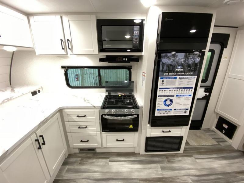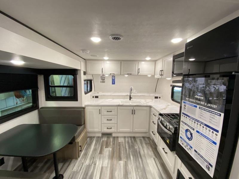The Jayco Jay Flight SLX travel trailer is quite easy to own because it is lightweight for an easier towing experience. Built on a fully integrated A-frame with galvanized-steel, impact-resistant wheel wells, the Jay Flight SLX has quality at its very foundation. That quality continues on to the electric self-adjusting brakes, easy-lube hubs, Magnum Truss roof system, and LP quick connect. Some of what the mandatory Customer Value Package includes is backup camera prep, Keyed-Alike entry and baggage doors, and an on-demand tankless water heater.