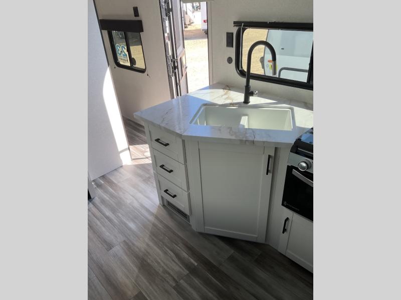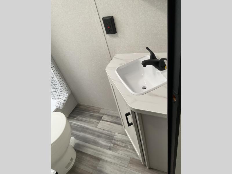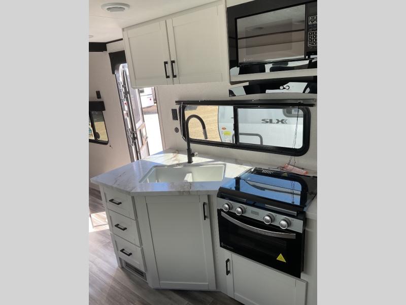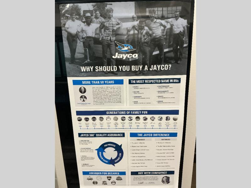 The Jayco Jay Flight SLX travel trailer is quite easy to own because it is lightweight for an easier towing experience. Built on a fully integrated A-frame with galvanized-steel, impact-resistant wheel wells, the Jay Flight SLX has quality at its very foundation. That quality continues on to the electric self-adjusting brakes, easy-lube hubs, Magnum Truss roof system, and LP quick connect. Some of what the mandatory Customer Value Package includes is backup camera prep, Keyed-Alike entry and baggage doors, marine grade exterior speakers, and an on-demand tankless water heater.