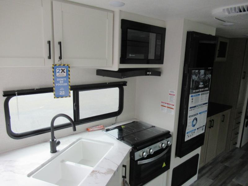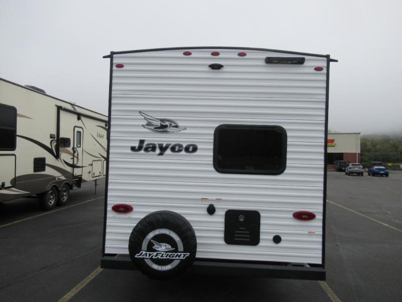 The Jayco Jay Flight SLX travel trailer is quite easy to own because it is lightweight for an easier towing experience. Built on a fully integrated A-frame with galvanized-steel, impact-resistant wheel wells, the Jay Flight SLX has quality at its very foundation. That quality continues on to the electric self-adjusting brakes, easy-lube hubs, Magnum Truss roof system, and LP quick connect. Some of what the mandatory Customer Value Package includes is backup camera prep, Keyed-Alike entry and baggage doors, and an on-demand tankless water heater.