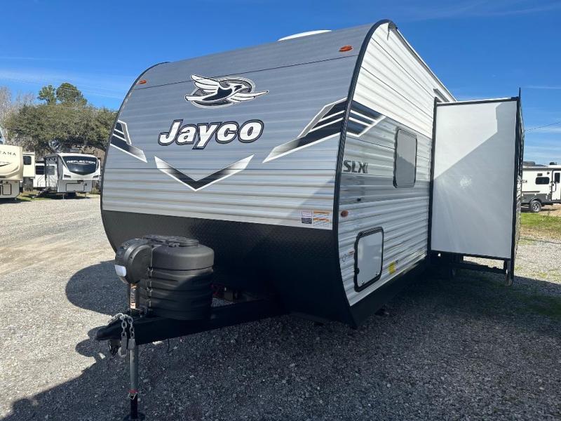 The Jayco Jay Flight SLX travel trailer is quite easy to own because it is lightweight for an easier towing experience. Built on a fully integrated A-frame with galvanized-steel, impact-resistant wheel wells, the Jay Flight SLX has quality at its very foundation. That quality continues on to the electric self-adjusting brakes, easy-lube hubs, Magnum Truss roof system, and LP quick connect. Some of what the mandatory Customer Value Package includes is backup camera prep, Keyed-Alike entry and baggage doors, and an on-demand tankless water heater.