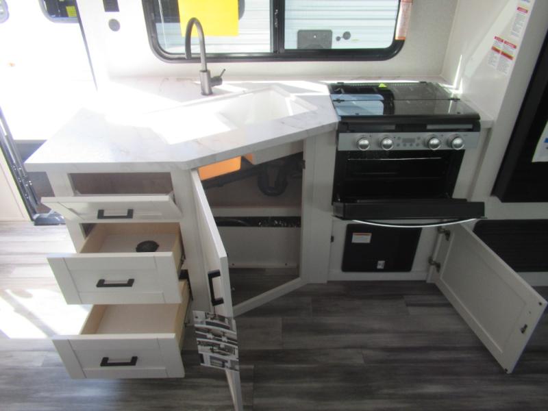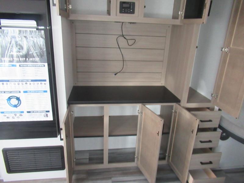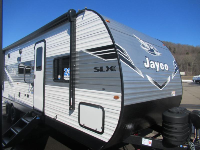The Jayco Jay Flight SLX travel trailer is quite easy to own because it is lightweight for an easier towing experience. Built on a fully integrated A-frame with galvanized-steel, impact-resistant wheel wells, the Jay Flight SLX has quality at its very foundation. That quality continues on to the electric self-adjusting brakes, easy-lube hubs, Magnum Truss roof system, and LP quick connect. Some of what the mandatory Customer Value Package includes is backup camera prep, Keyed-Alike entry and baggage doors, and an on-demand tankless water heater.