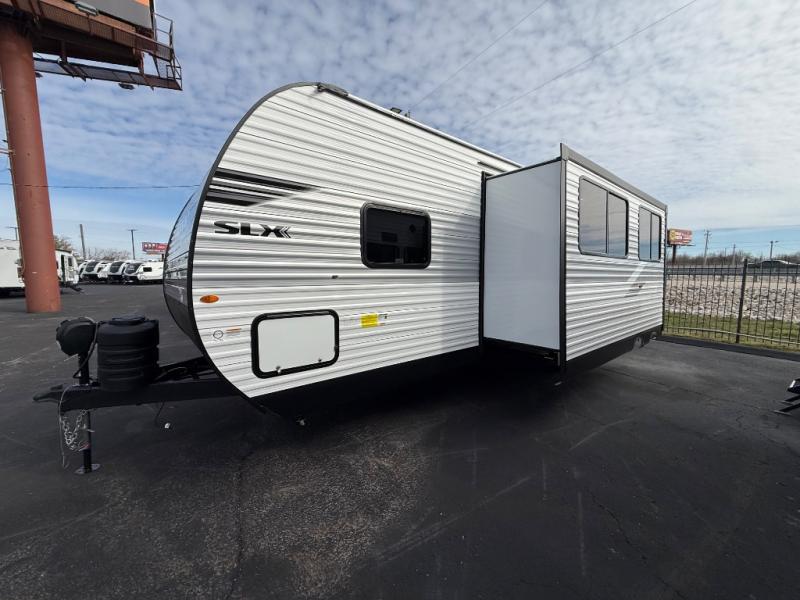 The Jayco Jay Flight SLX travel trailer is quite easy to own because it is lightweight for an easier towing experience. Built on a fully integrated A-frame with galvanized-steel, impact-resistant wheel wells, the Jay Flight SLX has quality at its very foundation. That quality continues on to the electric self-adjusting brakes, easy-lube hubs, Magnum Truss roof system, and LP quick connect. Some of what the mandatory Customer Value Package includes is backup camera prep, Keyed-Alike entry and baggage doors, and an on-demand tankless water heater.