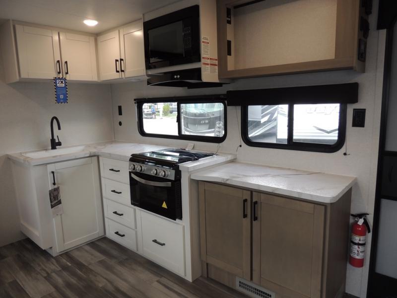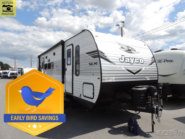 The Jayco Jay Flight SLX travel trailer is quite easy to own because it is lightweight for an easier towing experience. Built on a fully integrated A-frame with galvanized-steel, impact-resistant wheel wells, the Jay Flight SLX has quality at its very foundation. That quality continues on to the electric self-adjusting brakes, easy-lube hubs, Magnum Truss roof system, and LP quick connect. Some of what the mandatory Customer Value Package includes is backup camera prep, Keyed-Alike entry and baggage doors, and an on-demand tankless water heater.