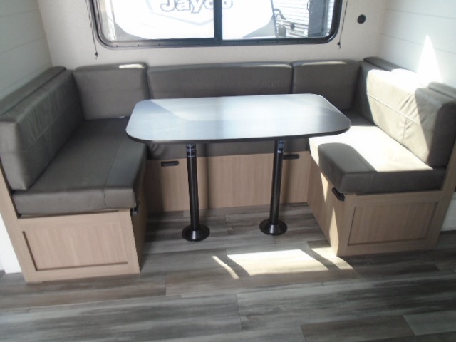 The Jayco Jay Flight SLX travel trailer is quite easy to own because it is lightweight for an easier towing experience. Built on a fully integrated A-frame with galvanized-steel, impact-resistant wheel wells, the Jay Flight SLX has quality at its very foundation. That quality continues on to the electric self-adjusting brakes, easy-lube hubs, Magnum Truss roof system, and LP quick connect. Some of what the mandatory Customer Value Package includes is backup camera prep, Keyed-Alike entry and baggage doors, and an on-demand tankless water heater.