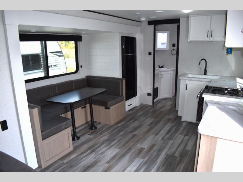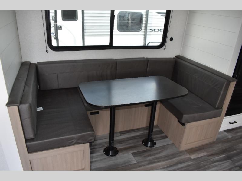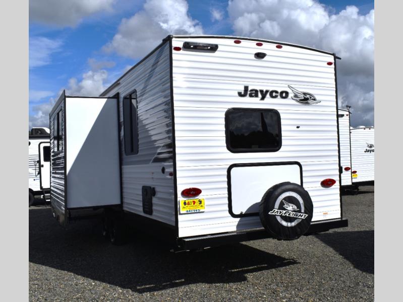 The Jayco Jay Flight SLX travel trailer is quite easy to own because it is lightweight for an easier towing experience. Built on a fully integrated A-frame with galvanized-steel, impact-resistant wheel wells, the Jay Flight SLX has quality at its very foundation. That quality continues on to the electric self-adjusting brakes, easy-lube hubs, Magnum Truss roof system, and LP quick connect. Some of what the mandatory Customer Value Package includes is backup camera prep, Keyed-Alike entry and baggage doors, and an on-demand tankless water heater.