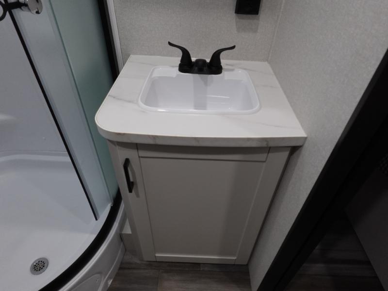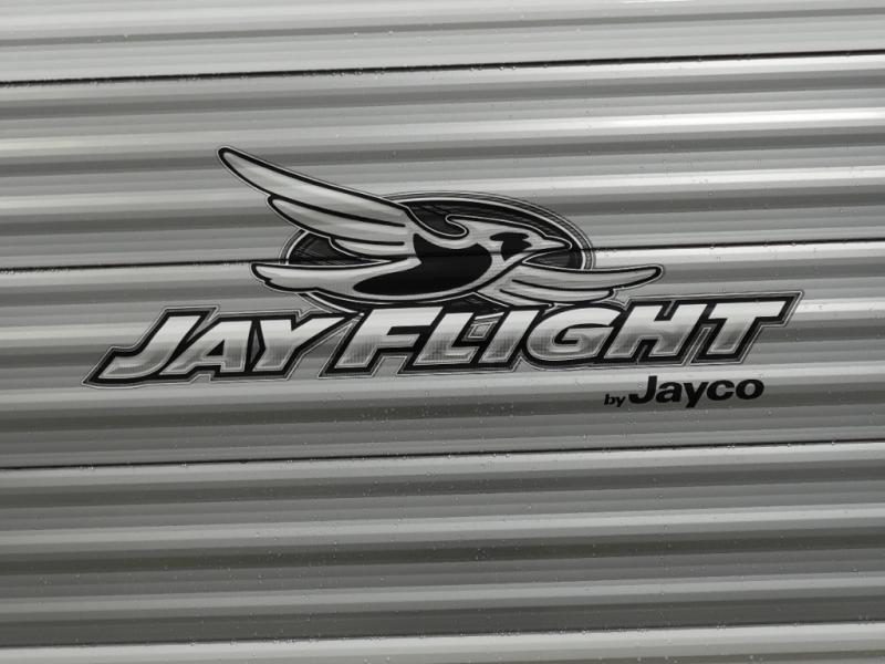 The Jayco Jay Flight SLX travel trailer is quite easy to own because it is lightweight for an easier towing experience. Built on a fully integrated A-frame with galvanized-steel, impact-resistant wheel wells, the Jay Flight SLX has quality at its very foundation. That quality continues on to the electric self-adjusting brakes, easy-lube hubs, Magnum Truss roof system, and LP quick connect. Some of what the mandatory Customer Value Package includes is backup camera prep, Keyed-Alike entry and baggage doors, marine grade exterior speakers, and an on-demand tankless water heater.