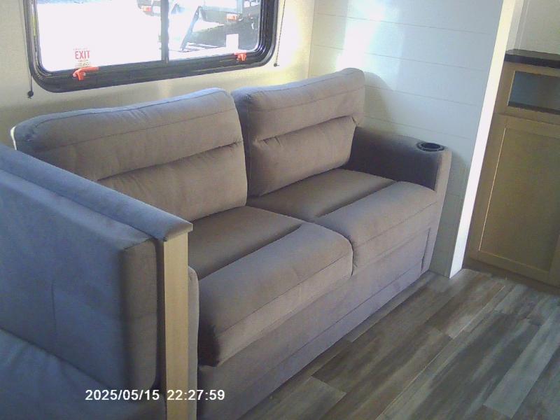Time spent in this double slide out trailer will be time well spent! Your crew can relax on the sofa or lounge chairs, and dine at the booth dinette. A dual entry bath will create a front master bedroom you are sure to love. There is a queen bed slide out here, along with a front wardrobe, a dresser, plus washer and dryer prep. The rear kitchen includes ample counter space, all the appliances to create meals, and a pantry for snacks.