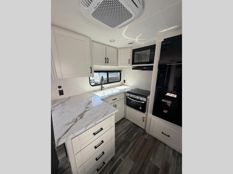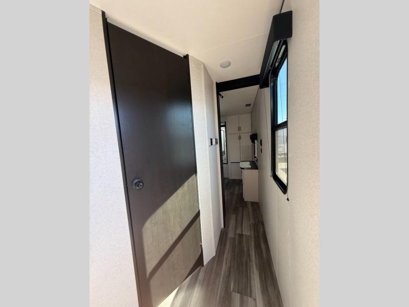 Time spent in this double slide out trailer will be time well spent! Your crew can relax on the sofa or lounge chairs, and dine at the booth dinette. A dual entry bath will create a front master bedroom you are sure to love. There is a queen bed slide out here, along with a front wardrobe, a dresser, plus washer and dryer prep. The rear kitchen includes ample counter space, all the appliances to create meals, and a pantry for snacks.
