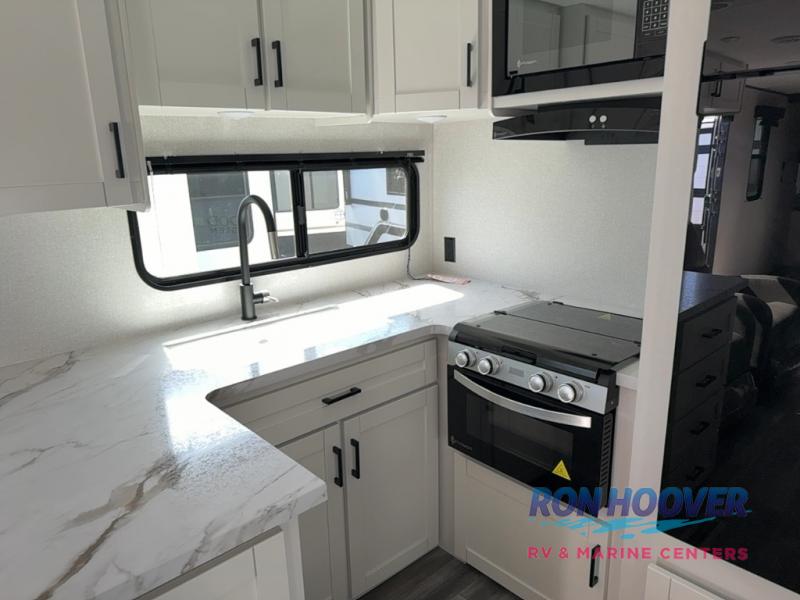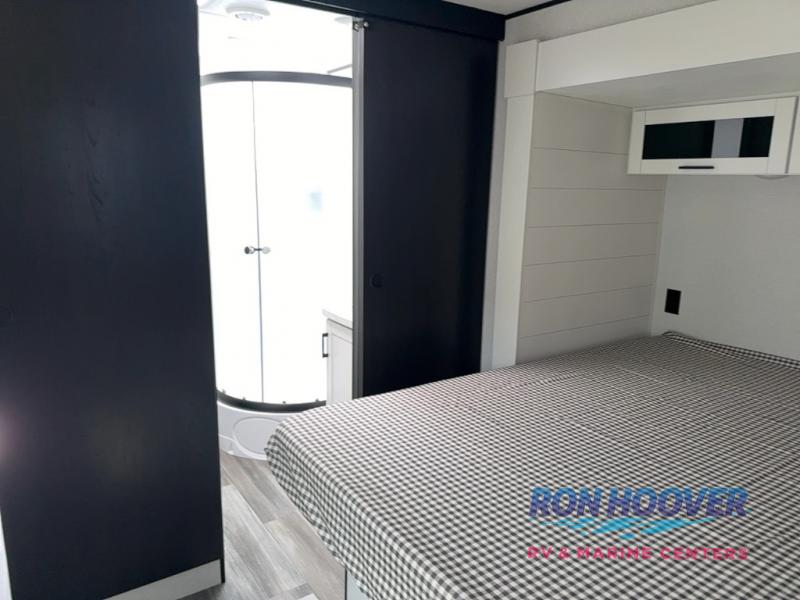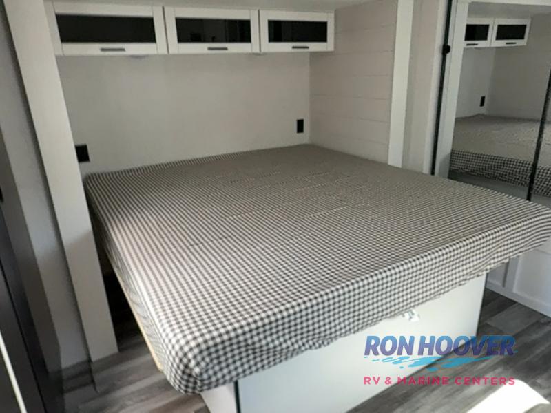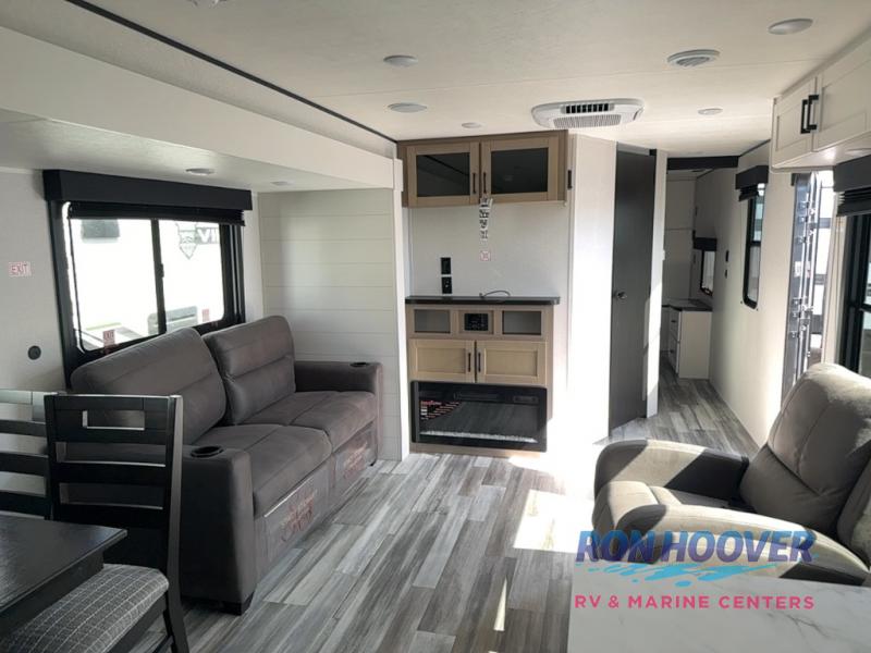 Time spent in this double slide out trailer will be time well spent! Your crew can relax on the sofa or lounge chairs, and dine at the booth dinette. A dual entry bath will create a front master bedroom you are sure to love. There is a queen bed slide out here, along with a front wardrobe, a dresser, plus washer and dryer prep. The rear kitchen includes ample counter space, all the appliances to create meals, and a pantry for snacks.