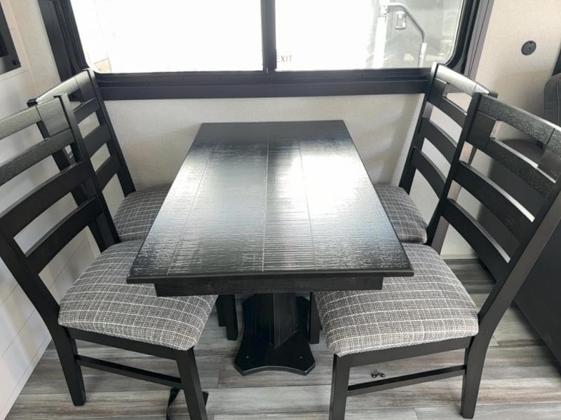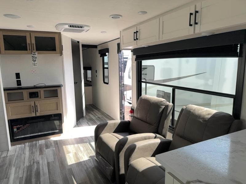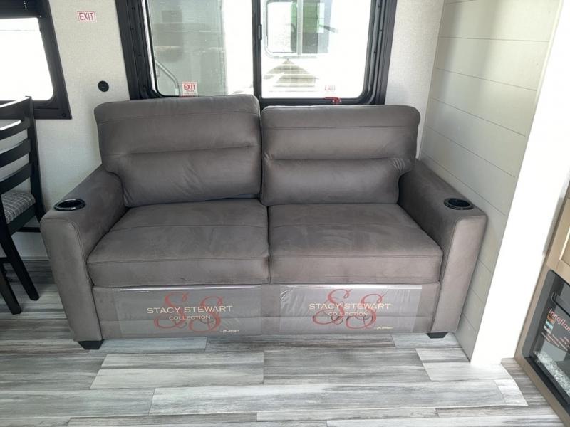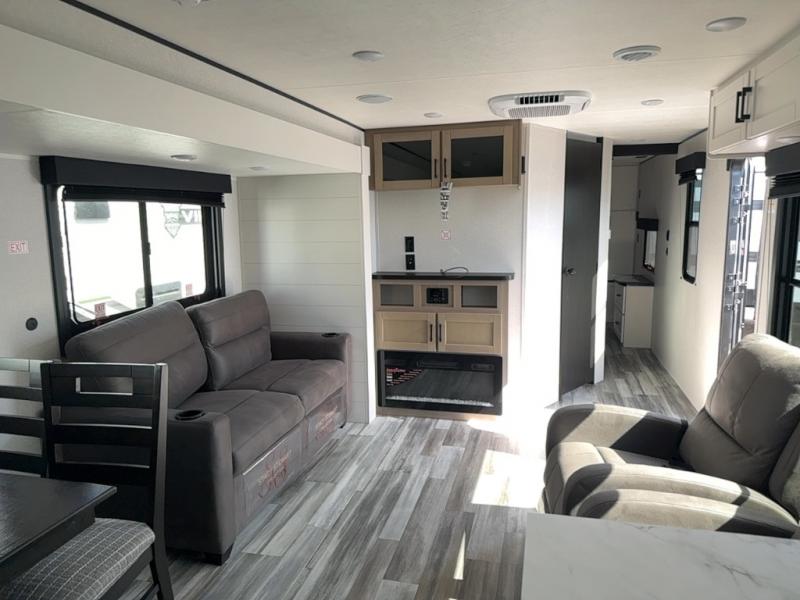 Time spent in this double slide out trailer will be time well spent! Your crew can relax on the sofa or lounge chairs, and dine at the booth dinette. A dual entry bath will create a front master bedroom you are sure to love. There is a queen bed slide out here, along with a front wardrobe, a dresser, plus washer and dryer prep. The rear kitchen includes ample counter space, all the appliances to create meals, and a pantry for snacks.