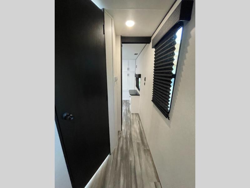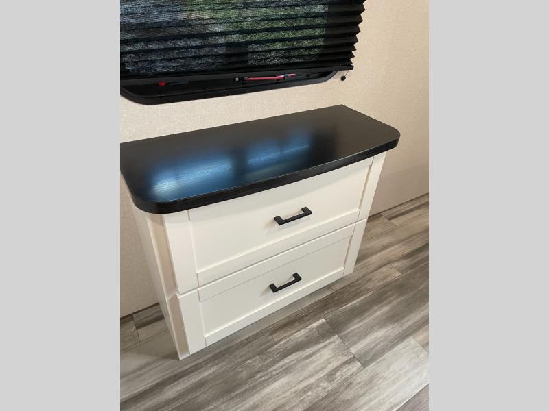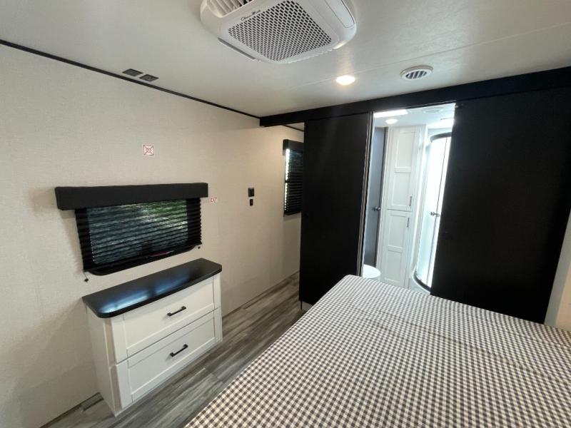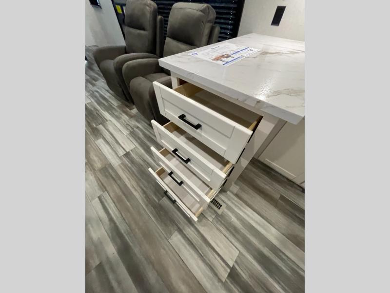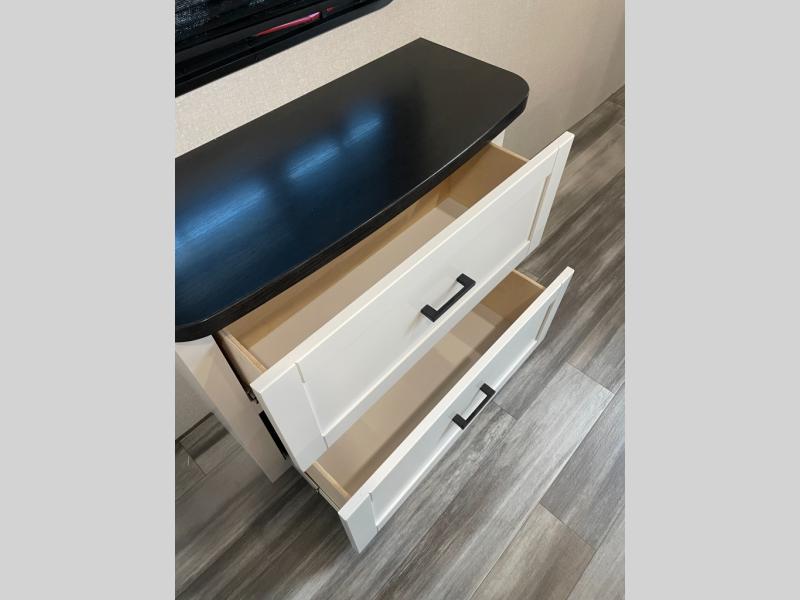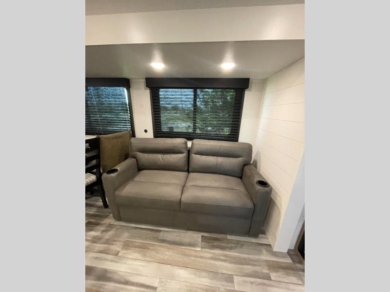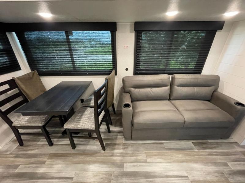 Time spent in this double slide out trailer will be time well spent! Your crew can relax on the sofa or lounge chairs, and dine at the booth dinette. A dual entry bath will create a front master bedroom you are sure to love. There is a queen bed slide out here, along with a front wardrobe, a dresser, plus washer and dryer prep. The rear kitchen includes ample counter space, all the appliances to create meals, and a pantry for snacks.