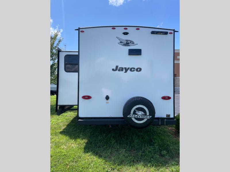 The Jayco Jay Flight SLX travel trailer is quite easy to own because it is lightweight for an easier towing experience. Built on a fully integrated A-frame with galvanized-steel, impact-resistant wheel wells, the Jay Flight SLX has quality at its very foundation. That quality continues on to the electric self-adjusting brakes, easy-lube hubs, Magnum Truss roof system, and LP quick connect. Some of what the mandatory Customer Value Package includes is backup camera prep, Keyed-Alike entry and baggage doors, marine grade exterior speakers, and an on-demand tankless water heater.