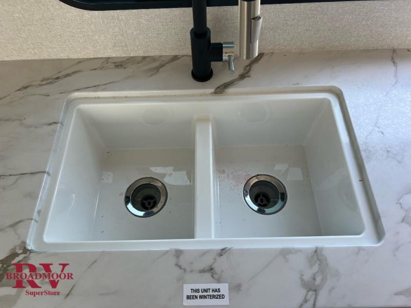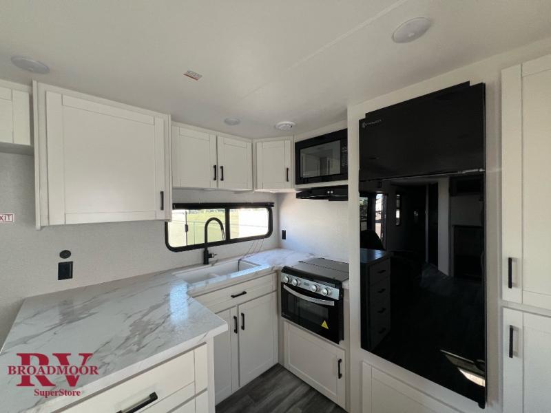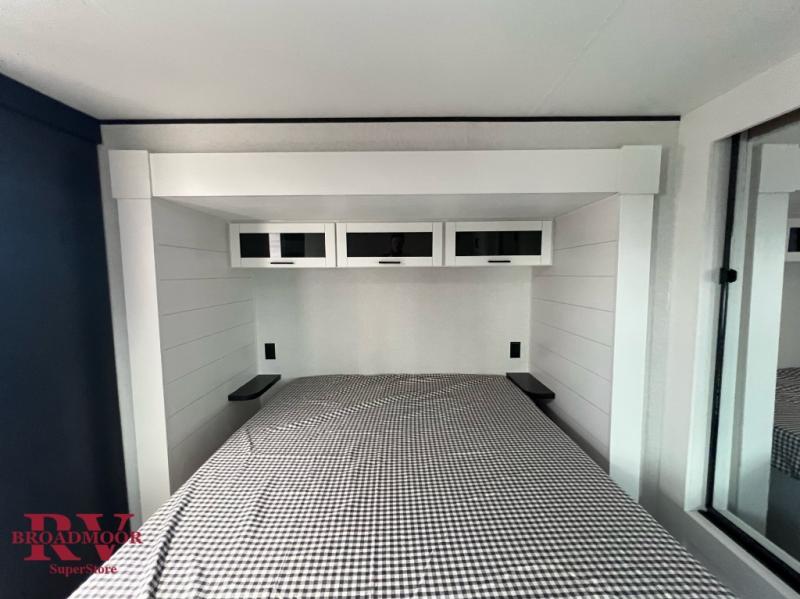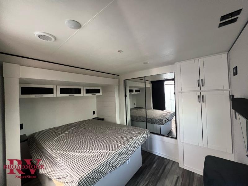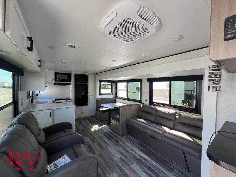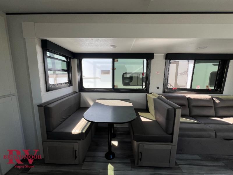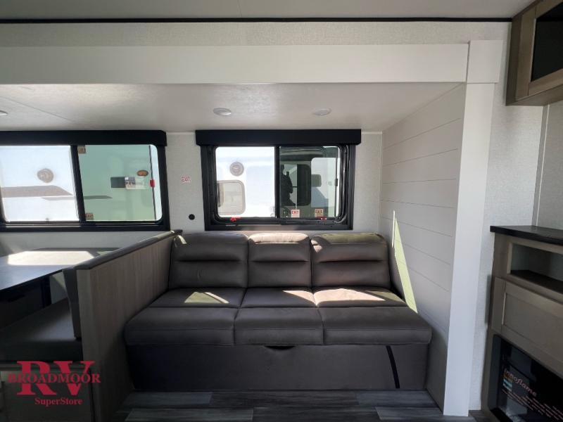 Time spent in this double slide out trailer will be time well spent! Your crew can relax on the sofa or lounge chairs, and dine at the booth dinette. A dual entry bath will create a front master bedroom you are sure to love. There is a queen bed slide out here, along with a front wardrobe, a dresser, plus washer and dryer prep. The rear kitchen includes ample counter space, all the appliances to create meals, and a pantry for snacks.