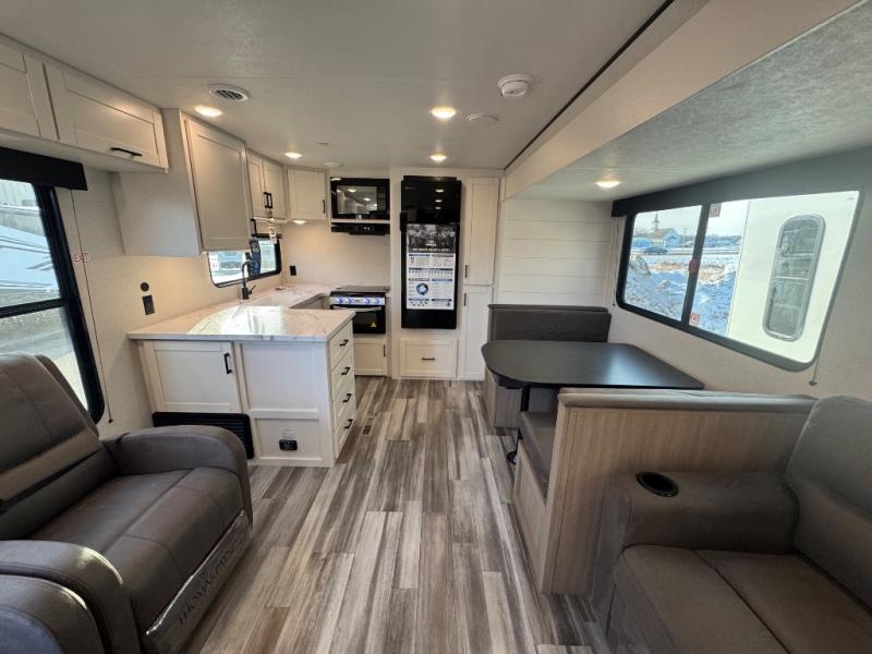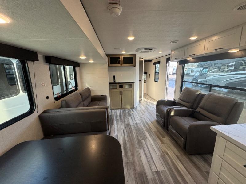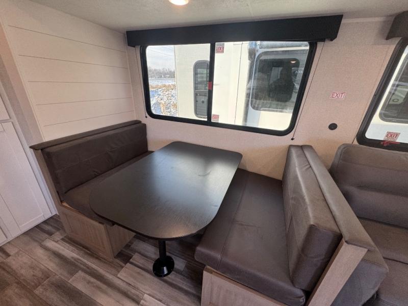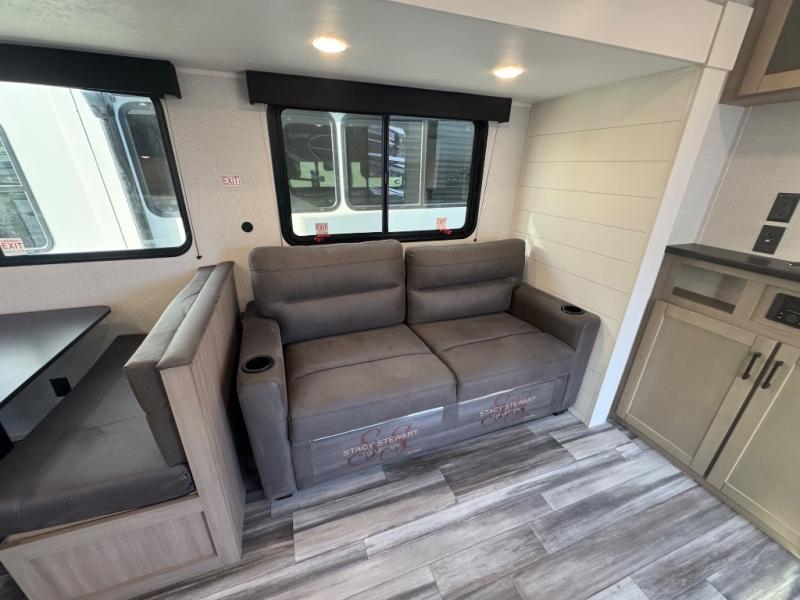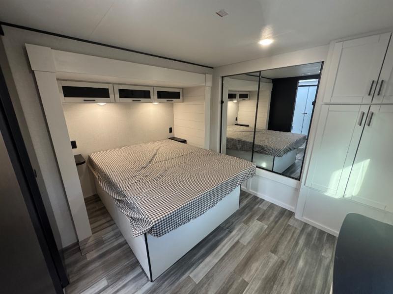 Time spent in this double slide out trailer will be time well spent! Your crew can relax on the sofa or lounge chairs, and dine at the booth dinette. A dual entry bath will create a front master bedroom you are sure to love. There is a queen bed slide out here, along with a front wardrobe, a dresser, plus washer and dryer prep. The rear kitchen includes ample counter space, all the appliances to create meals, and a pantry for snacks.