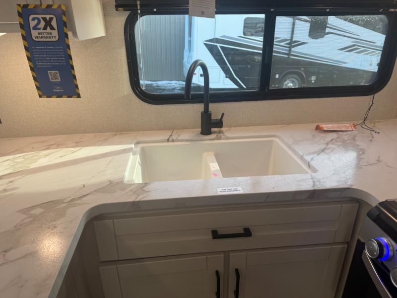 The Jayco Jay Flight SLX travel trailer is quite easy to own because it is lightweight for an easier towing experience. Built on a fully integrated A-frame with galvanized-steel, impact-resistant wheel wells, the Jay Flight SLX has quality at its very foundation. That quality continues on to the electric self-adjusting brakes, easy-lube hubs, Magnum Truss roof system, and LP quick connect. Some of what the mandatory Customer Value Package includes is backup camera prep, Keyed-Alike entry and baggage doors, and an on-demand tankless water heater.