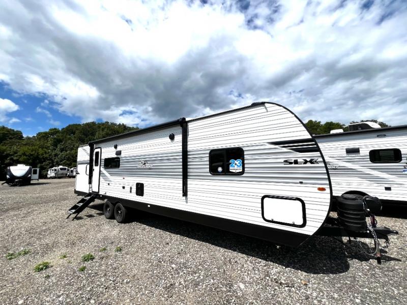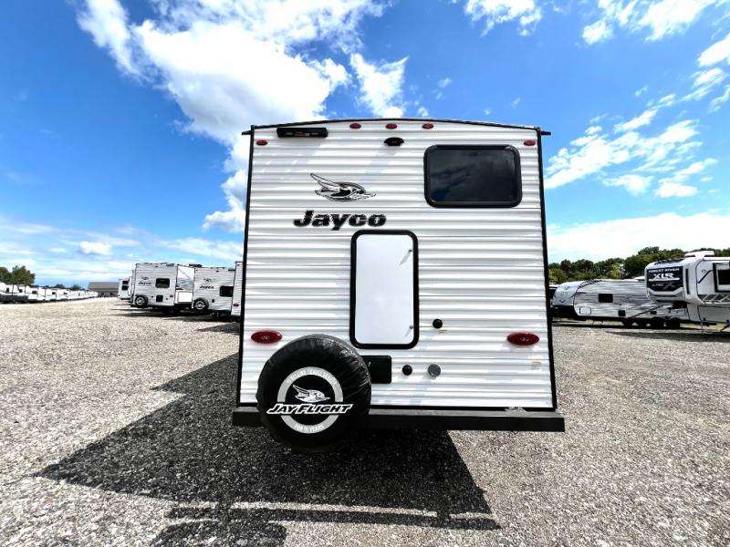The Jayco Jay Flight SLX travel trailer is quite easy to own because it is lightweight for an easier towing experience. Built on a fully integrated A-frame with galvanized-steel, impact-resistant wheel wells, the Jay Flight SLX has quality at its very foundation. That quality continues on to the electric self-adjusting brakes, easy-lube hubs, Magnum Truss roof system, and LP quick connect. Some of what the mandatory Customer Value Package includes is backup camera prep, Keyed-Alike entry and baggage doors, and an on-demand tankless water heater.