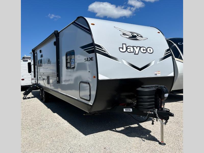 The Jayco Jay Flight SLX travel trailer is quite easy to own because it is lightweight for an easier towing experience. Built on a fully integrated A-frame with galvanized-steel, impact-resistant wheel wells, the Jay Flight SLX has quality at its very foundation. That quality continues on to the electric self-adjusting brakes, easy-lube hubs, Magnum Truss roof system, and LP quick connect. Some of what the mandatory Customer Value Package includes is backup camera prep, Keyed-Alike entry and baggage doors, and an on-demand tankless water heater.