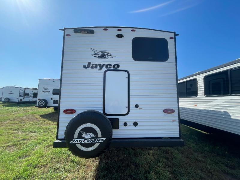The Jayco Jay Flight SLX travel trailer is quite easy to own because it is lightweight for an easier towing experience. Built on a fully integrated A-frame with galvanized-steel, impact-resistant wheel wells, the Jay Flight SLX has quality at its very foundation. That quality continues on to the electric self-adjusting brakes, easy-lube hubs, Magnum Truss roof system, and LP quick connect. Some of what the mandatory Customer Value Package includes is backup camera prep, Keyed-Alike entry and baggage doors, and an on-demand tankless water heater.