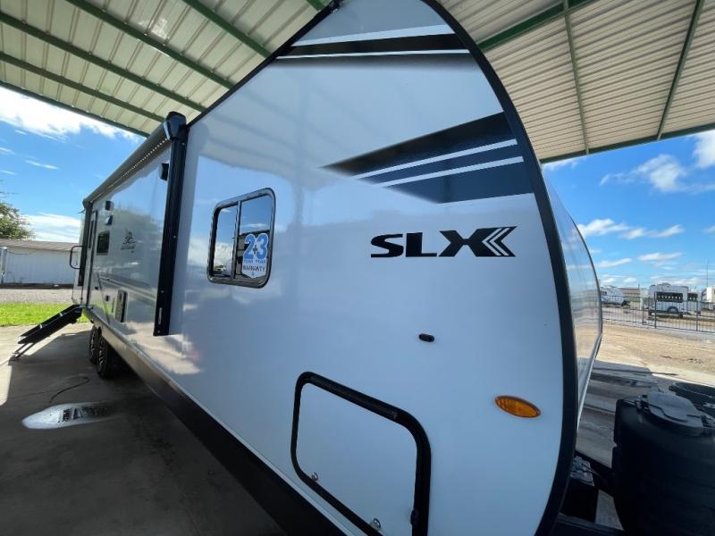 The Jayco Jay Flight SLX travel trailer is quite easy to own because it is lightweight for an easier towing experience. Built on a fully integrated A-frame with galvanized-steel, impact-resistant wheel wells, the Jay Flight SLX has quality at its very foundation. That quality continues on to the electric self-adjusting brakes, easy-lube hubs, Magnum Truss roof system, and LP quick connect. Some of what the mandatory Customer Value Package includes is backup camera prep, Keyed-Alike entry and baggage doors, and an on-demand tankless water heater.