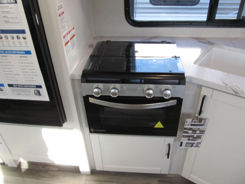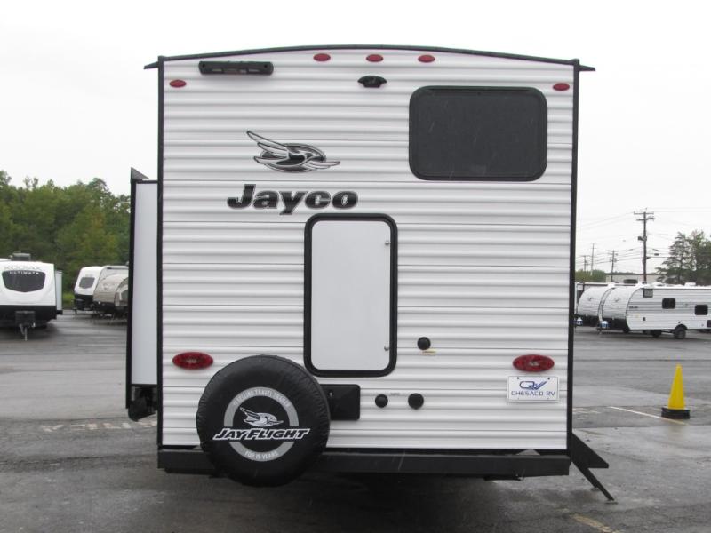 The Jayco Jay Flight SLX travel trailer is quite easy to own because it is lightweight for an easier towing experience. Built on a fully integrated A-frame with galvanized-steel, impact-resistant wheel wells, the Jay Flight SLX has quality at its very foundation. That quality continues on to the electric self-adjusting brakes, easy-lube hubs, Magnum Truss roof system, and LP quick connect. Some of what the mandatory Customer Value Package includes is backup camera prep, Keyed-Alike entry and baggage doors, and an on-demand tankless water heater.